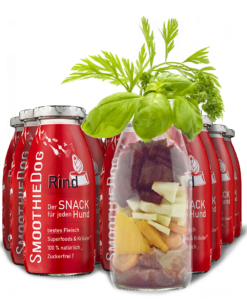 Nejlepší hovězí maso poskytuje masovou chuť našeho smoothie pro psy, které je doplněno výživnou zeleninou, jako je mrkev, petržel a červená řepa. Kořen petržele například prospívá kostem a zubům vašeho psa, podporuje krvetvorbu a čištění a přirozeně posiluje imunitu vašeho psa. Šípek také podporuje imunitní systém a je skutečným super krmivem pro psy. Lahodné maliny přinášejí lehkou sladkost této odrůdy SmoothieDog. Quinoa neobsahuje obilniny, je bohatým zdrojem bílkovin a zdravé vlákniny pro psy všech věkových kategorií. Bylinky meduňka, oregano a tymián skvěle obohacují naše smoothie pro psy a jsou dokonalým doplňkem, protože například tymián je účinný proti střevním parazitům.