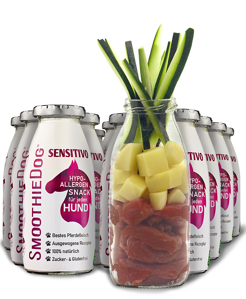 Dopřejte potěšení i psímu alergikovi nebo pejskovi s citlivým zažíváním. Benefity koňského masa jsou i pro jejich bříška hravě stravitelná. Proto ve smoothie najdete jen koňské maso, pastinák, cukety a pitnou vodu. Toť vše. Pro čtyřnohé kamarády s nadváhou nebo neschopné větší akce rozhodně doporučujeme (společně s odborníky) nízkotučné koní maso. Ale pochutnají si na něm i pejsci bez alergie či intolerance.