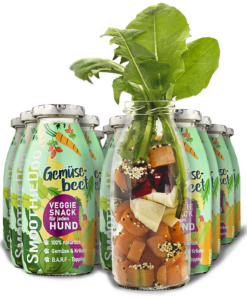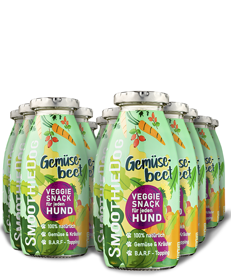 Vegetariánské psí smoothie poskládané z dobrot přímo ze zeleninového záhonu obsahuje spoustu mrkve, dýně, červené řepy, kořenové petržele, lněného semínka, šípku, kurkumy, tymiánu a sušené pampelišky. Toto smoothie najde mnoho nadšených fanoušků a dává psím rodičům dobrou alternativu psí svačiny bez masa.