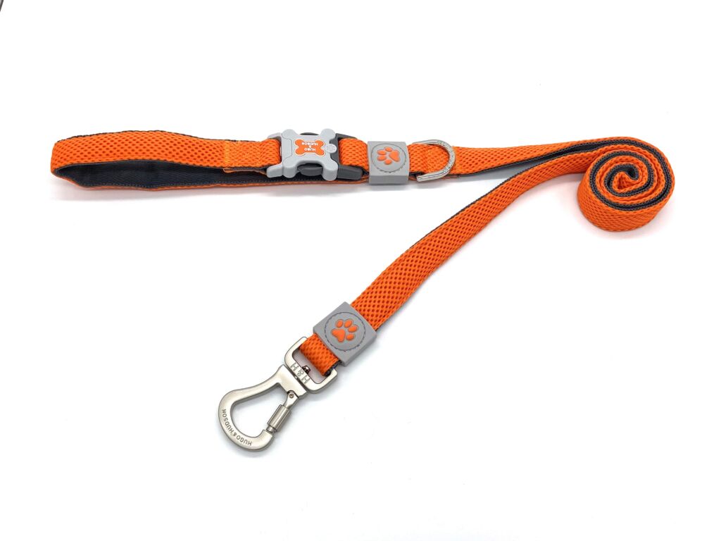 Vodítko je s mřížkovou polstrovanou rukojetí pro vaše pohodlí, přezkou pro bezpečnost vašeho psa a s D kroužkem pro připevnění pytlíků na exkrementy.  Vodítko také přicházejí s vysoce kvalitní nerezovou sponou na háčku s otočením o 360 stupňů.  Dodává se v různých výrazných a jasných barvách, díky čemuž váš domácí mazlíček vyniká od ostatních.