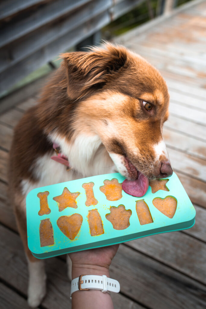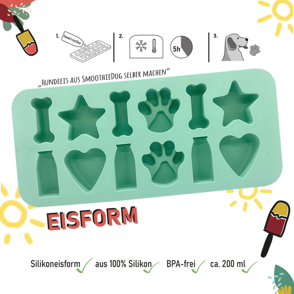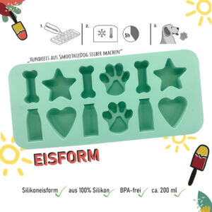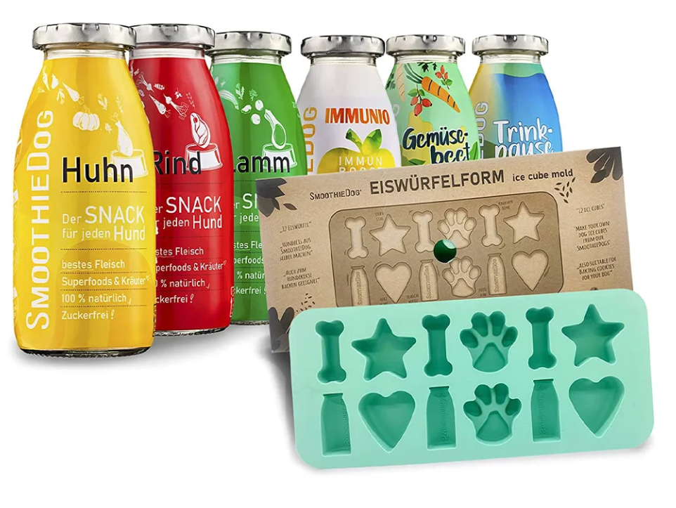 Sluníčko svítí, teploty stoupají a psí jazyky visí až na zem. To je ten pravý čas na zmrzlinu! Ale nejenom léto je skvělou příležitostí nabídnout pejskovi smoothie. V silikonové formě kromě zmrazení upečete i psí sušenky. Vyzkoušejte 6 skvělých příchutí (jehněčí, hovězí, kuřecí, kachní, z koňského masa a vegetariánské) ve zvýhodněném setu s praktickou formou.