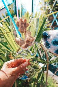 Obsah lahvičky smoothie a 2 vejce smíchejte s 250-400g bramborové mouky. Vložte do silikonových pečících formiček (např. tvar kostička, tlapička….) na 180 stupňů po 20min. Hotovo!
