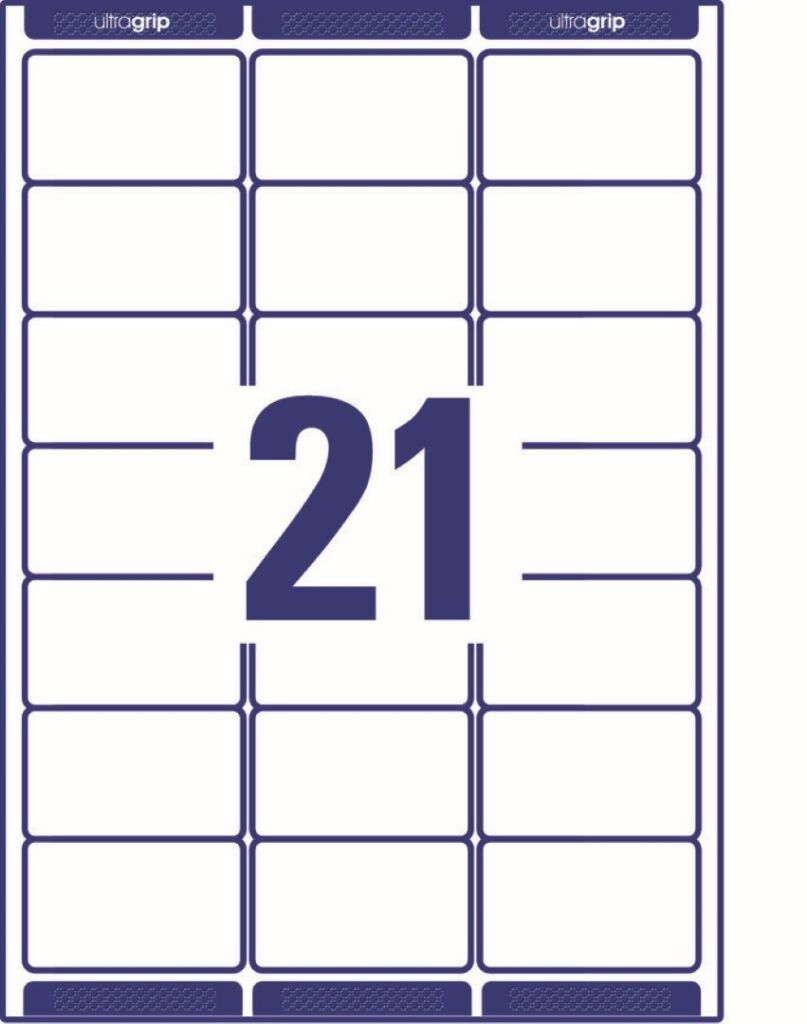 rozměr 63,5×38,1 mm, 10 archů A4, 210 ks etiket v balení (21 ks/arch), papírové, permanentní lepidlo, barva bílá. Typ tiskárny: černobílá laserová, barevná laserová, inkoustová.
