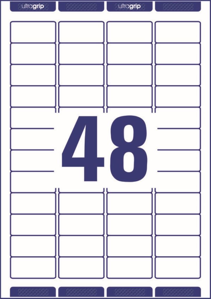 rozměr 45,7×21,2 mm, 10 archů A4, 480 ks etiket v balení (48 ks/arch), papírové, permanentní lepidlo, barva bílá. Typ tiskárny: černobílá laserová, barevná laserová, inkoustová.