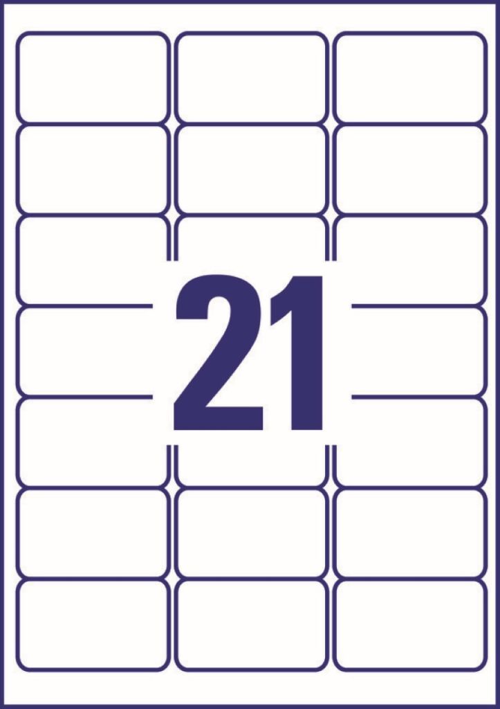 rozměr 63,5×38,1 mm, 25 archů A4, 525 ks etiket v balení (21 ks/arch), papírové, permanentní lepidlo, barva bílá. Typ tiskárny: inkoustová.