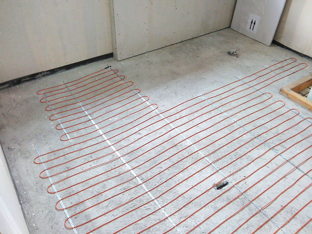 - Topné kabely pod dlažbu nebo krytiny s vyhovující tepelnou vodivostí s možností kladení na doplňkovou izolaci F-Board