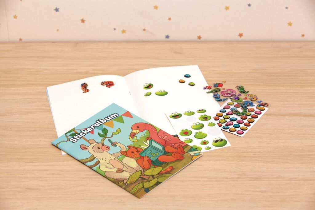 formát A5, album obsahuje 8 prázdných listů, silikonový papír, motiv zvířecí přátelé.