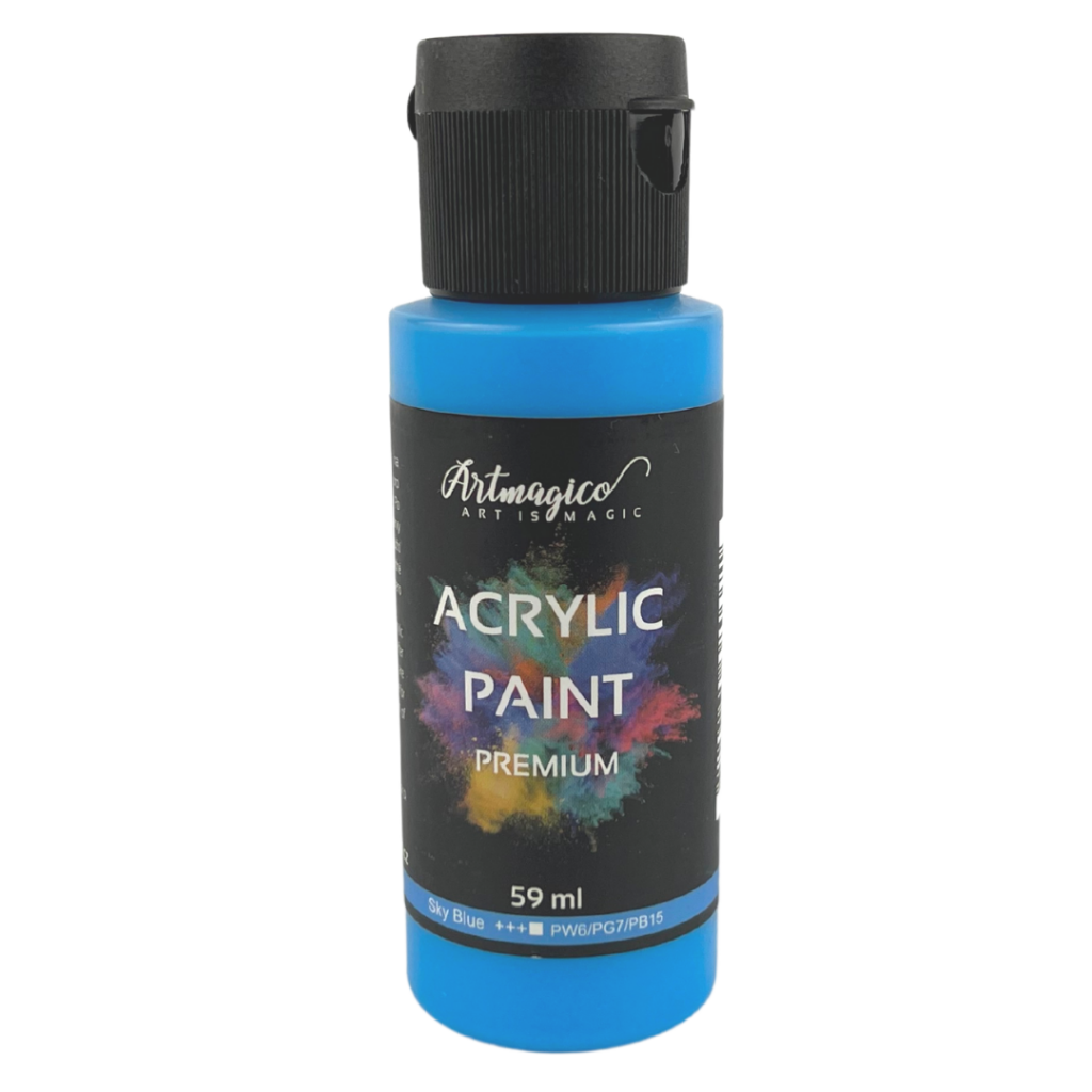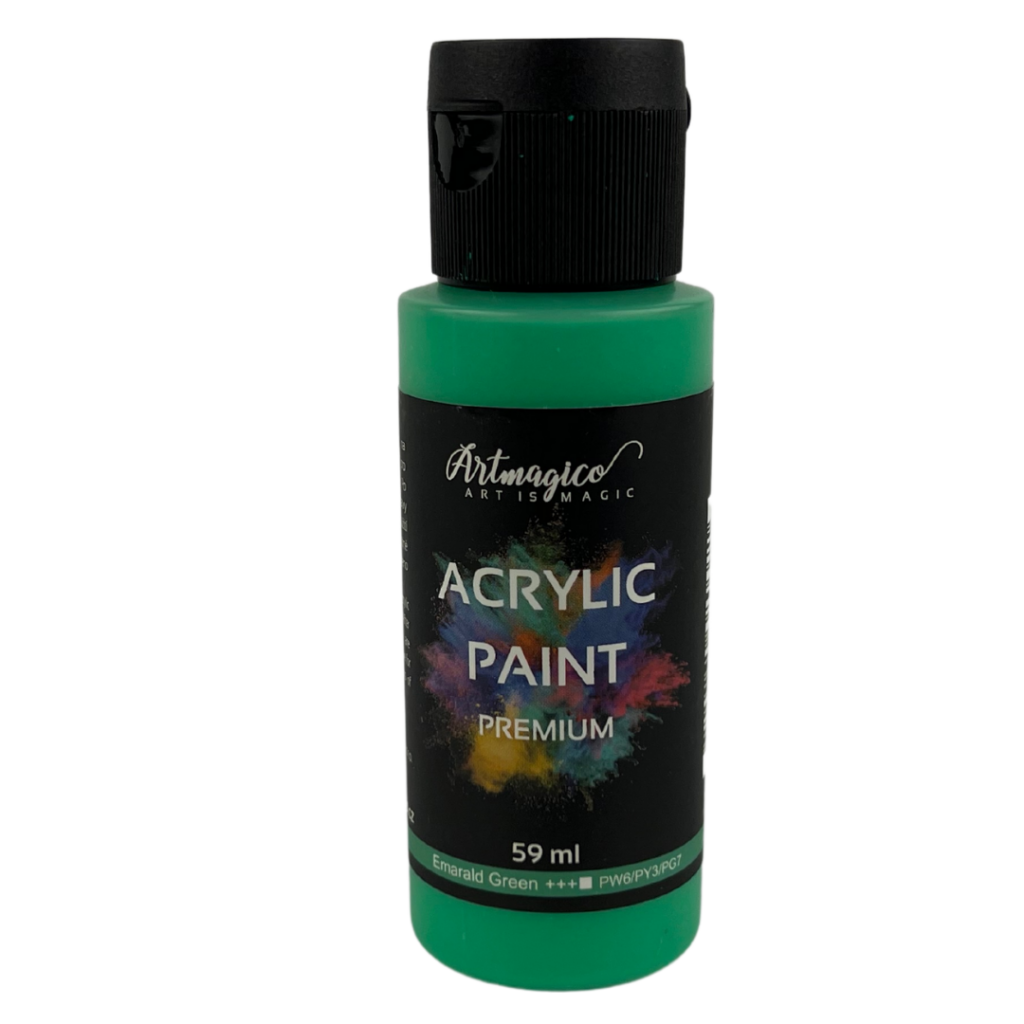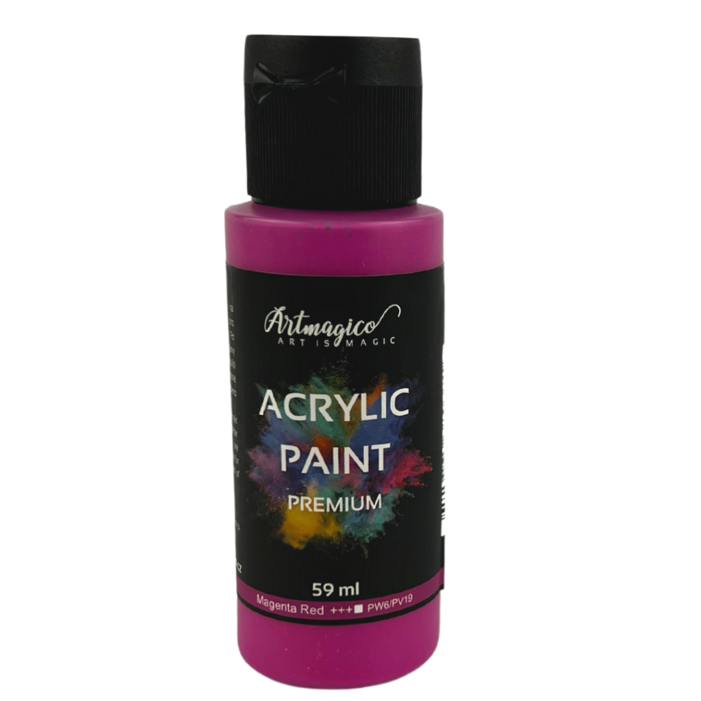 Akrylové barvy Artmagico jsou určené k umělecké tvorbě. Barvy jsou založené na vodní bázi a vynikají vysokým obsahem pigmentu, který zaručuje jejich perfektní krycí vlastnosti i na tmavém povrchu. Akrylové barvy jsou skvělé pro práci na každém povrchu – od dřeva, plastu, plátna, kartonu až po koženku nebo látku. Barvy jsou vodou ředitelné a po zaschnutí se stávají voděodolné. Barvy Vás okouzlí lesklými, zářivými odstíny a krémovou konzistencí, díky tomu je využijete ke všem typům akrylové malby od práce štětcem, přes špachtle, až po strukturální malbu. Vynikají rychleschnoucími vlastnostmi.