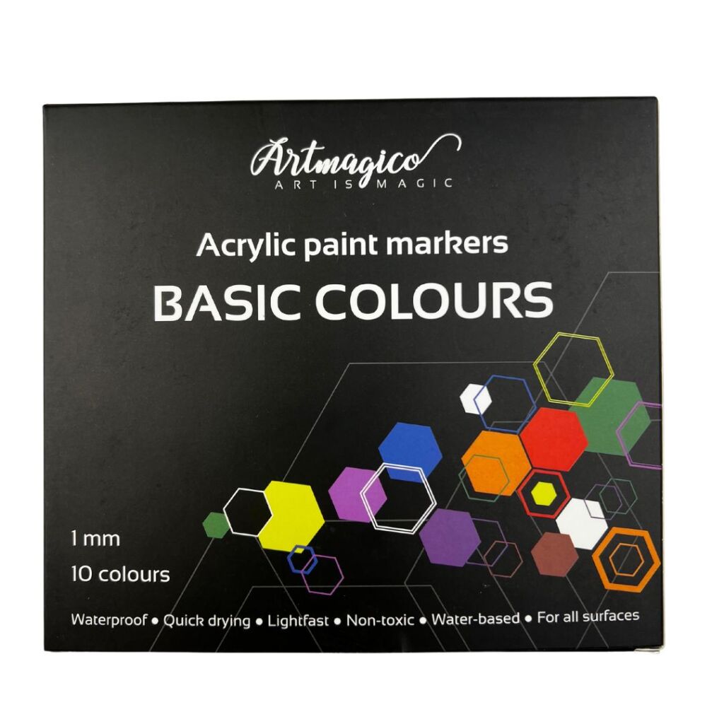 Akrylové popisovače obsahují inovativní inkoust na vodní bázi, jenž využijete na všechny typy povrchů. Fixy Artmagico zajišťují plynulý tok barvy, vysokou krycí schopnost a jasné a konzistentní barvy. V těle fixy najdete akrylovou barvu společně s pojivem, jejichž spojení je zajištěno kuličkou, která při štěrchání zajistí správnou konzistenci.