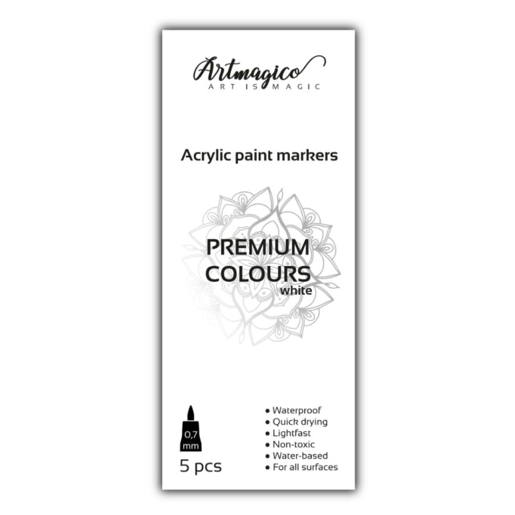 Akrylové popisovače obsahují inovativní inkoust na vodní bázi, jenž využijete na všechny typy povrchů. Fixy Artmagico zajišťují plynulý tok barvy, vysokou krycí schopnost a jasné a konzistentní barvy. V těle fixy najdete akrylovou barvu společně s pojivem, jejichž spojení je zajištěno kuličkou, která při štěrchání zajistí správnou konzistenci.