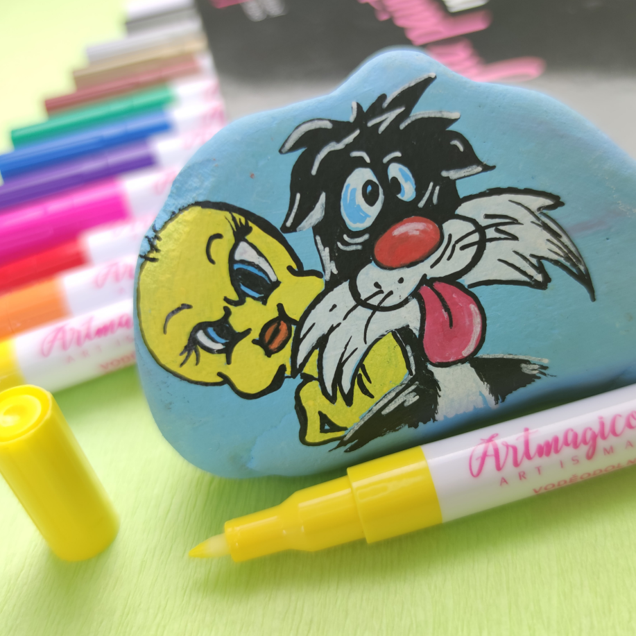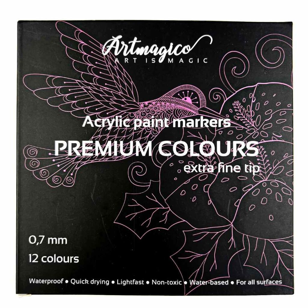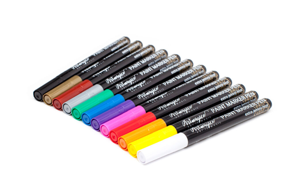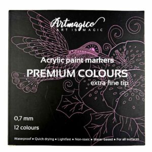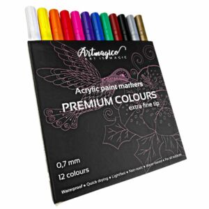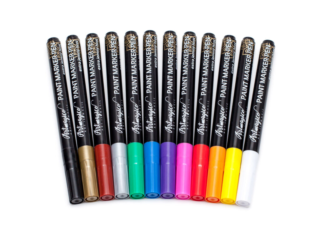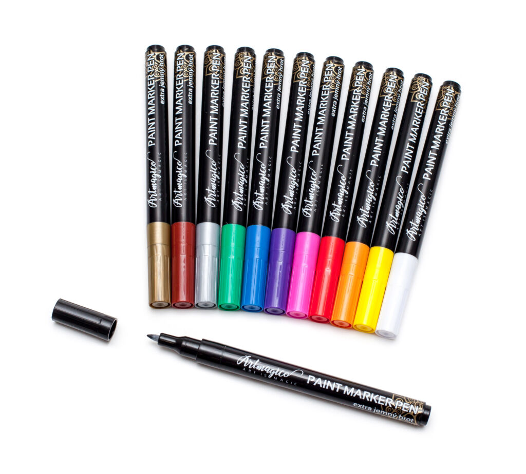 Akrylové popisovače obsahují inovativní inkoust na vodní bázi, jenž využijete na všechny typy povrchů. Fixy Artmagico zajišťují plynulý tok barvy, vysokou krycí schopnost a jasné a konzistentní barvy. V těle fixy najdete akrylovou barvu společně s pojivem, jejichž spojení je zajištěno kuličkou, která při štěrchání zajistí správnou konzistenci.