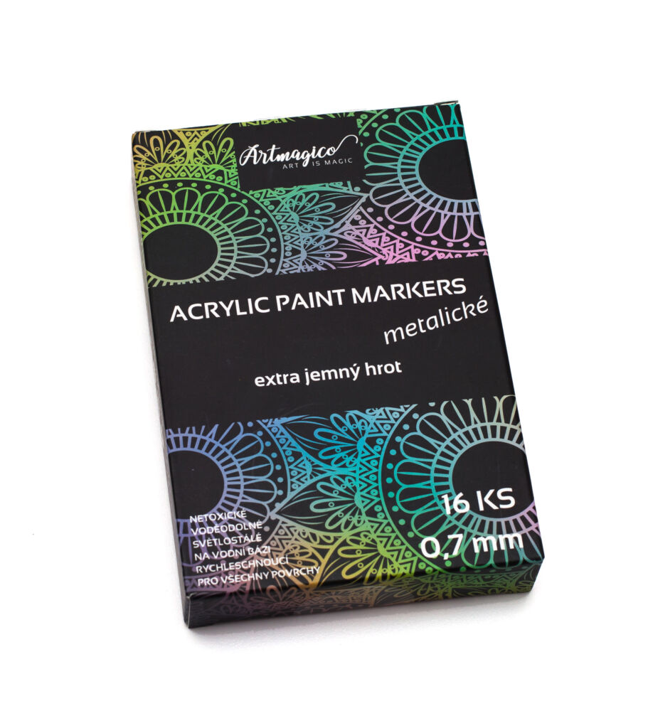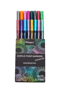Akrylové fixy v 16 metalických odstínech s extra jemným hrotem v nejtenčí šíři linky - 0,7 mm v prémiové kvalitě. Hravé barvy, které zazáří zejména na tmavém povrchu. Nechte se oslnit skvělými fixy v profesionální kvalitě a bavte se s nimi na svých projektech od malování, kreslení po psaní nebo tečkování.