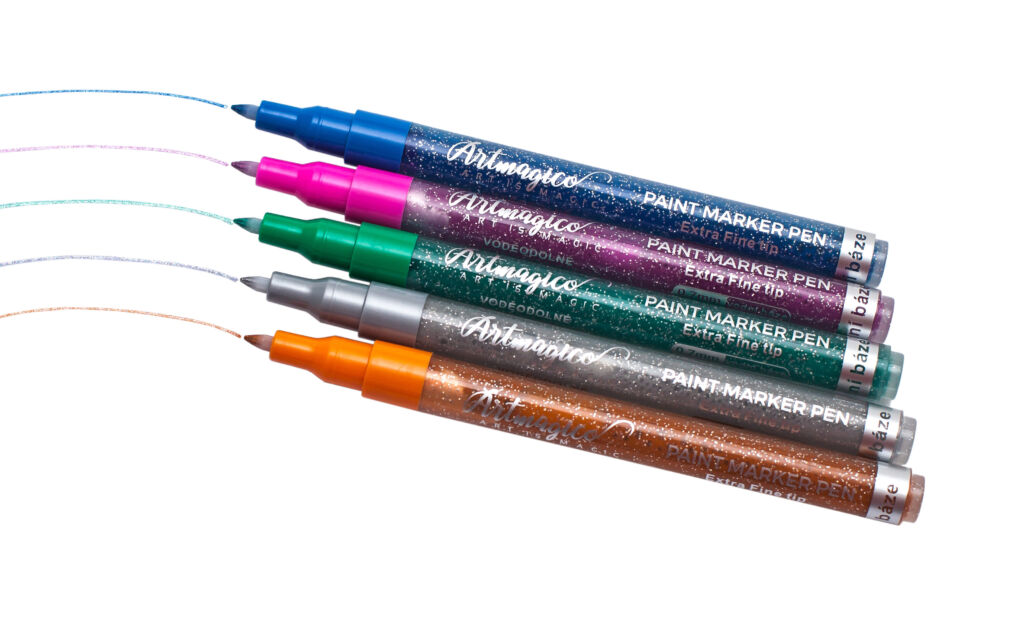 Fixy Artmagico s extra jemným hrotem obsahují plastový hrot, který je určen zejména zkušenějším nebo profesionálním malířům, kteří mají malování v ruce, ale potěší i kreativní nadšence, které posune v jejich tvorbě dál. Barvy, které fixy obsahují, překvapí svými krycími vlastnostmi, jenž vyniknou zejména na tmavém povrchu. Po řádném proštěrchání fixy (dle návodu na těle fixy) docílíte nepřekonatelně krycích a lesklých odstínů barev. S fixami Artmagico s extra jemným hrotem zvládnete s lehkostí detailní linie, ale využijete je i na vybarvování menších ploch nebo tvorbu jemných teček. Díky plynulému toku barvy využijete fixy i při tvorbě moderní kaligrafie a letteringu.