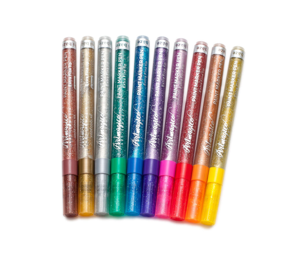 Akrylové fixy s třpytivým inkoustem a extra jemným hrotem o šíři linky 0,7 mm v prémiové kvalitě. Nejoblíbenější akrylové fixy na trhu s jedinečným a nepřekonatelným inkoustem, který obsahuje miniaturní třpytky, které dají Vaši tvorbě ten správný třpytivý efekt a vytvoříte tak jedinečné dílo.