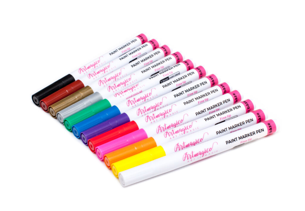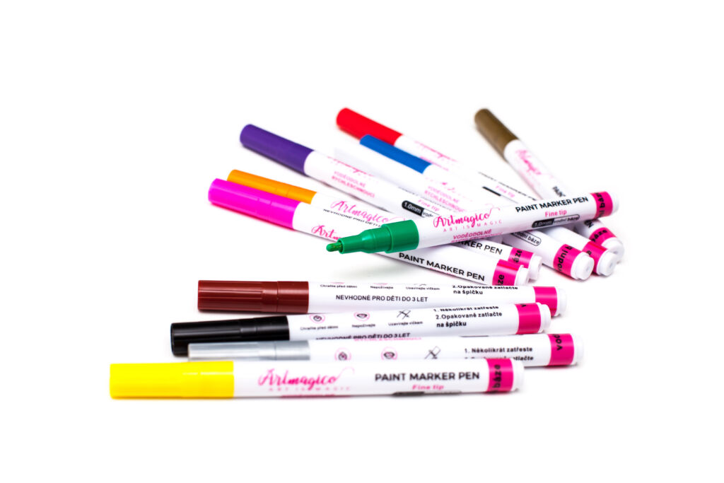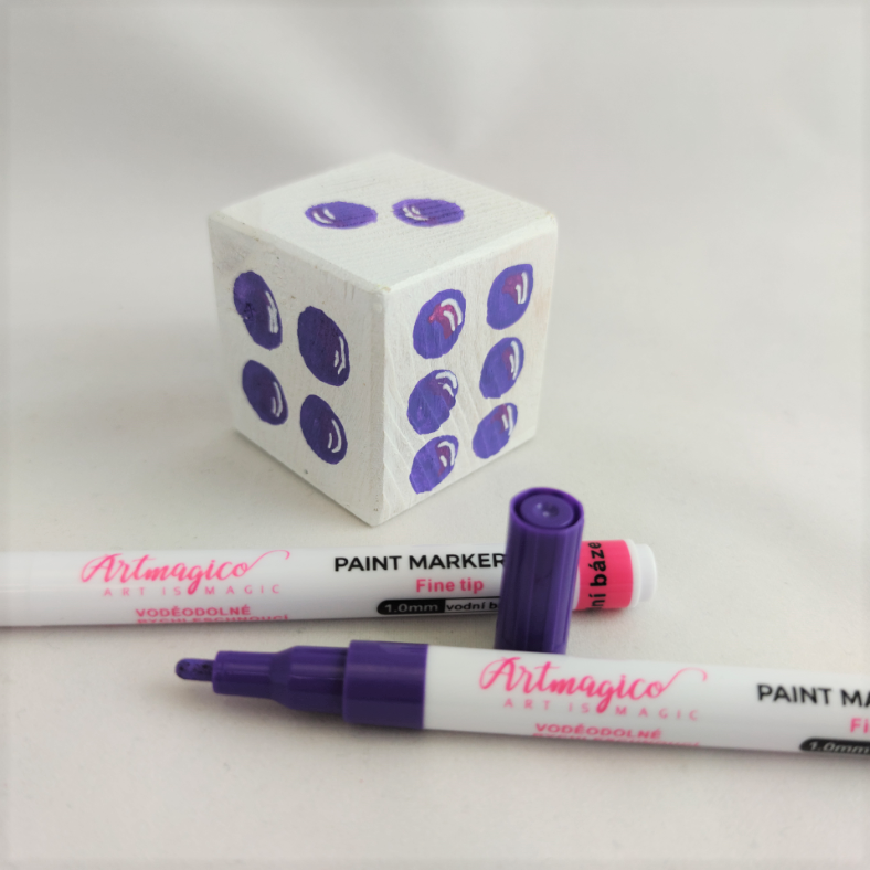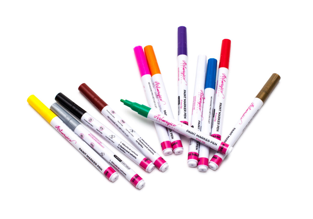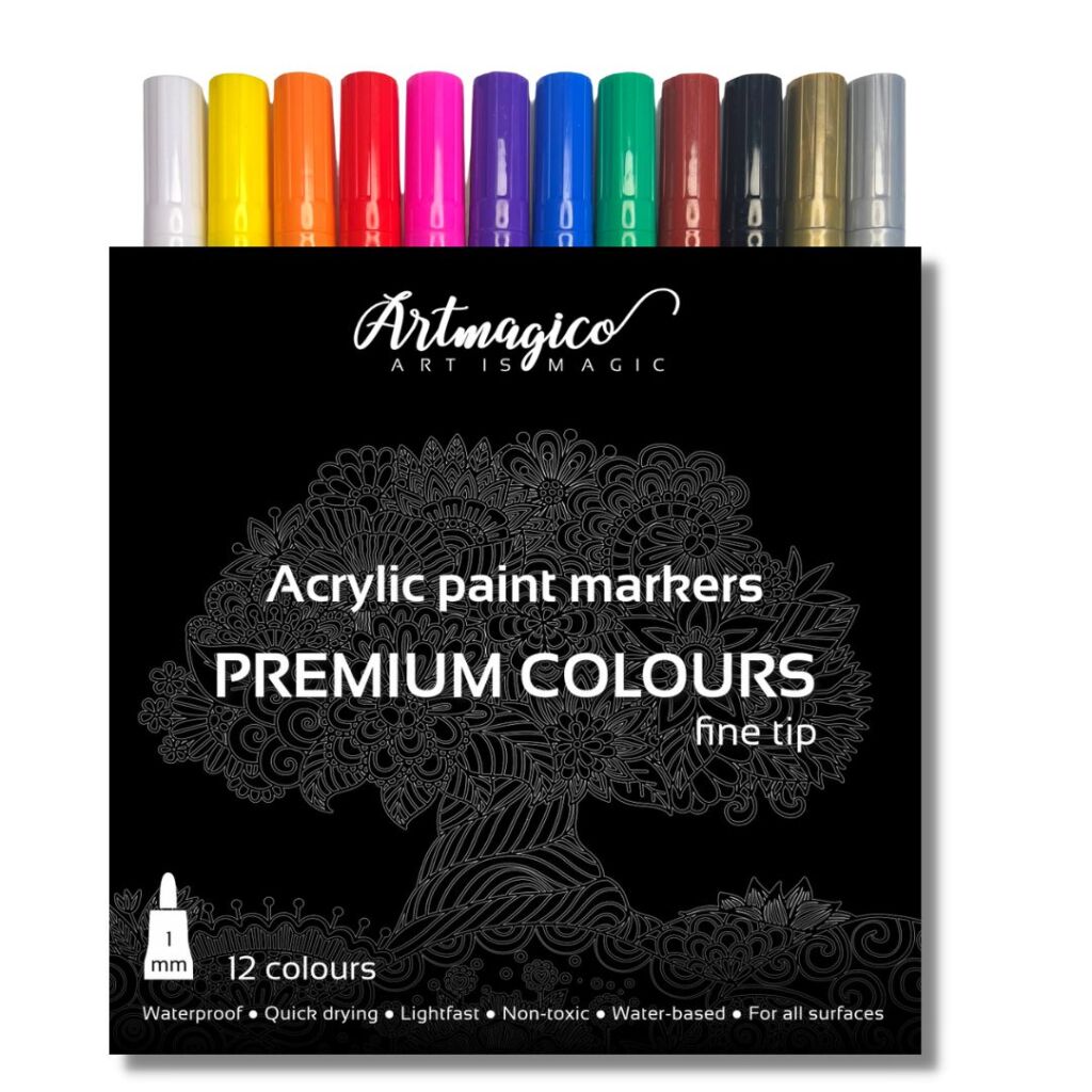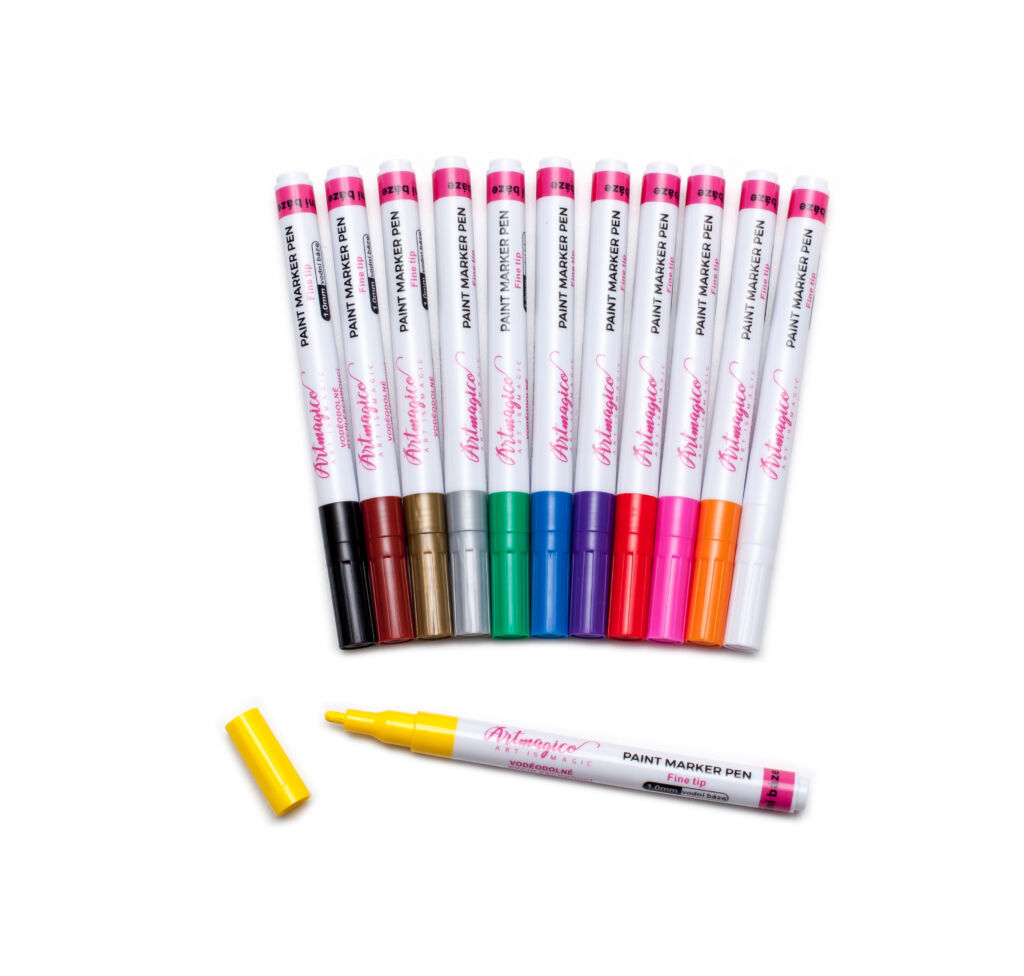 Akrylové popisovače obsahují inovativní inkoust na vodní bázi, jenž využijete na všechny typy povrchů. Fixy Artmagico zajišťují plynulý tok barvy, vysokou krycí schopnost a jasné a konzistentní barvy. V těle fixy najdete akrylovou barvu společně s pojivem, jejichž spojení je zajištěno kuličkou, která při štěrchání zajistí správnou konzistenci.