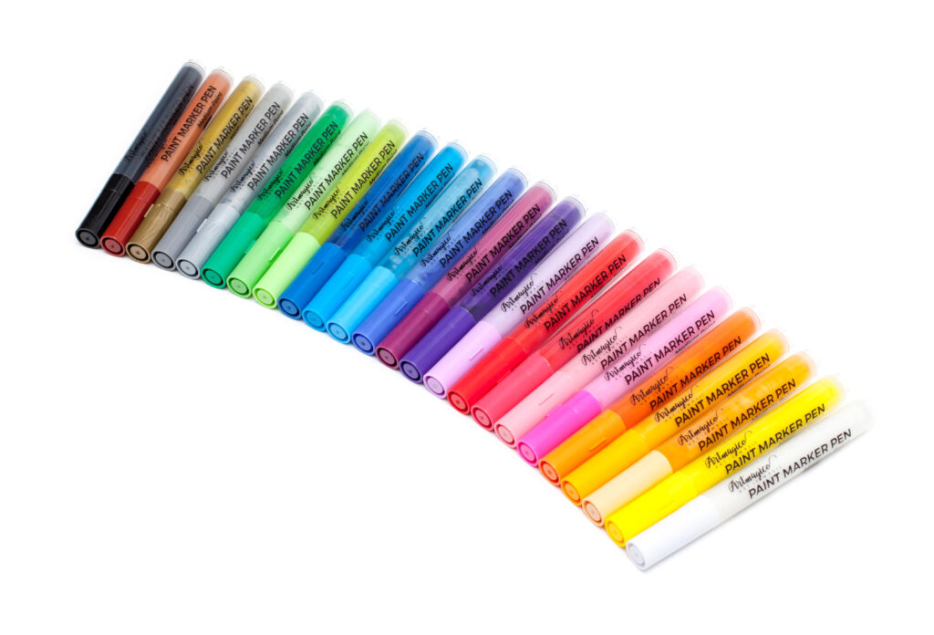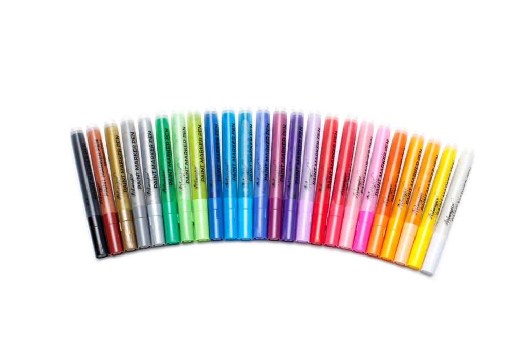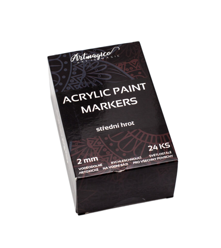 Akrylové fixy v sadě 24 kusů se středním hrotem o šíři linky 2-3 mm v prémiové kvalitě. Perfektní inkoust se skvělými krycími vlastnostmi vhodný pro všechny typy malby a kreativní tvorby. Větší šířka hrotu je skvěle předurčena pro vybarvování větších ploch.