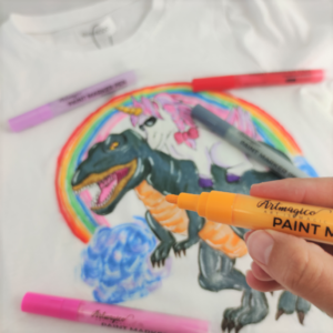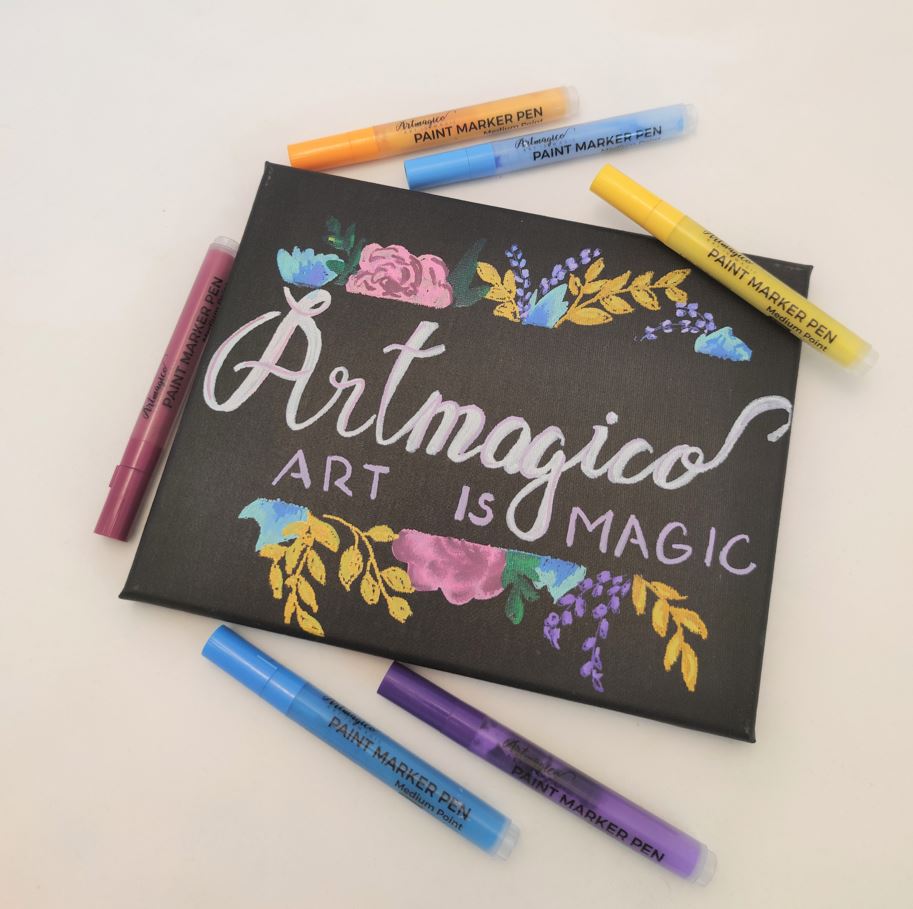 Akrylové popisovače obsahují inovativní inkoust na vodní bázi, jenž využijete na všechny typy povrchů. Fixy Artmagico zajišťují plynulý tok barvy, vysokou krycí schopnost a jasné a konzistentní barvy. V těle fixy najdete akrylovou barvu společně s pojivem, jejichž spojení je zajištěno kuličkou, která při štěrchání zajistí správnou konzistenci.