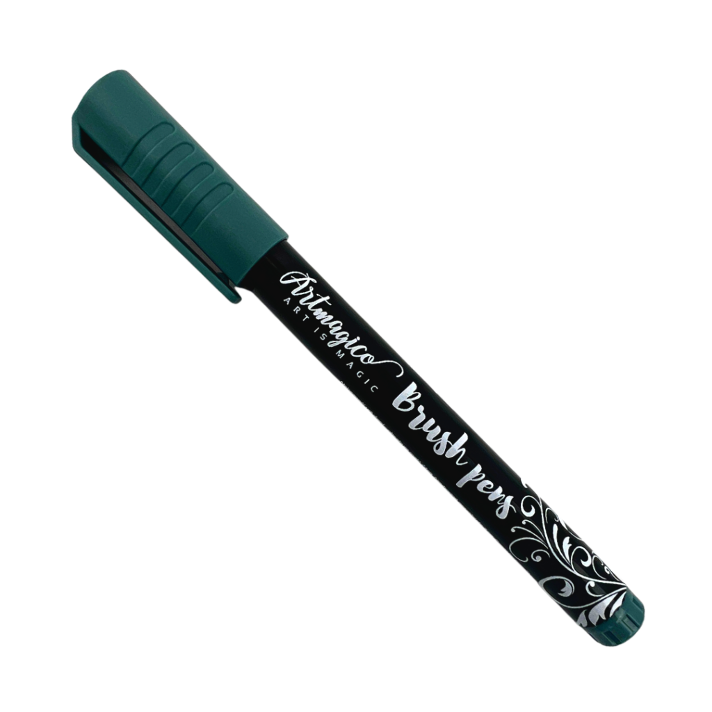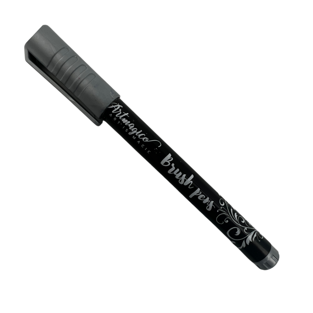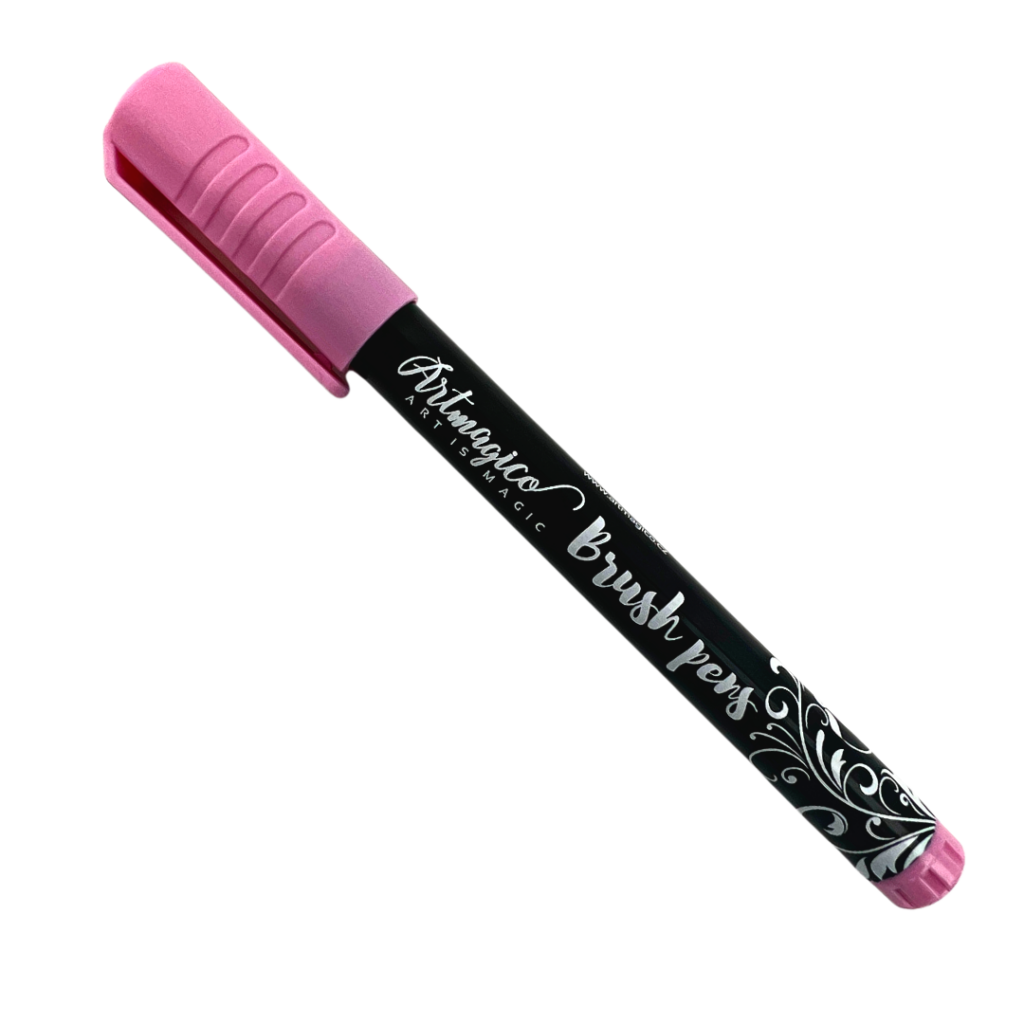 Artmagico Brush pens – spojují výhody dvou malířských nástrojů – fixů a štětce. Brush peny jsou fixy s hrotem, který je velmi podobný štětci. Takový hrot je vysoce přizpůsobivý a zvládnete díky němu vytvořit různé tloušťky linky. Linka se mění od tenké po širokou v závislosti na tlaku vyvíjeném na hrot. Dosáhnete tak snadno linky tloušťky od 1 do 3 mm. Brush peny jsou univerzálním nástrojem a využijete je při kaligrafii, letteringu, psaní, malování, scrapbookingu, ale také vybarvování. Vybírejte z 25 perfektně krycích fixů. Jejich vlastnosti využijete jak na bílém, tak černém povrchu. Fixy jsou díky svému inkoustu použitelné na všechny povrchy – černý i bílý papír, kámen, plast, železo, dřevo a další. Při použití na neporézní povrch je potřeba nechat inkoust řádně zaschnout a následně zalakovat.