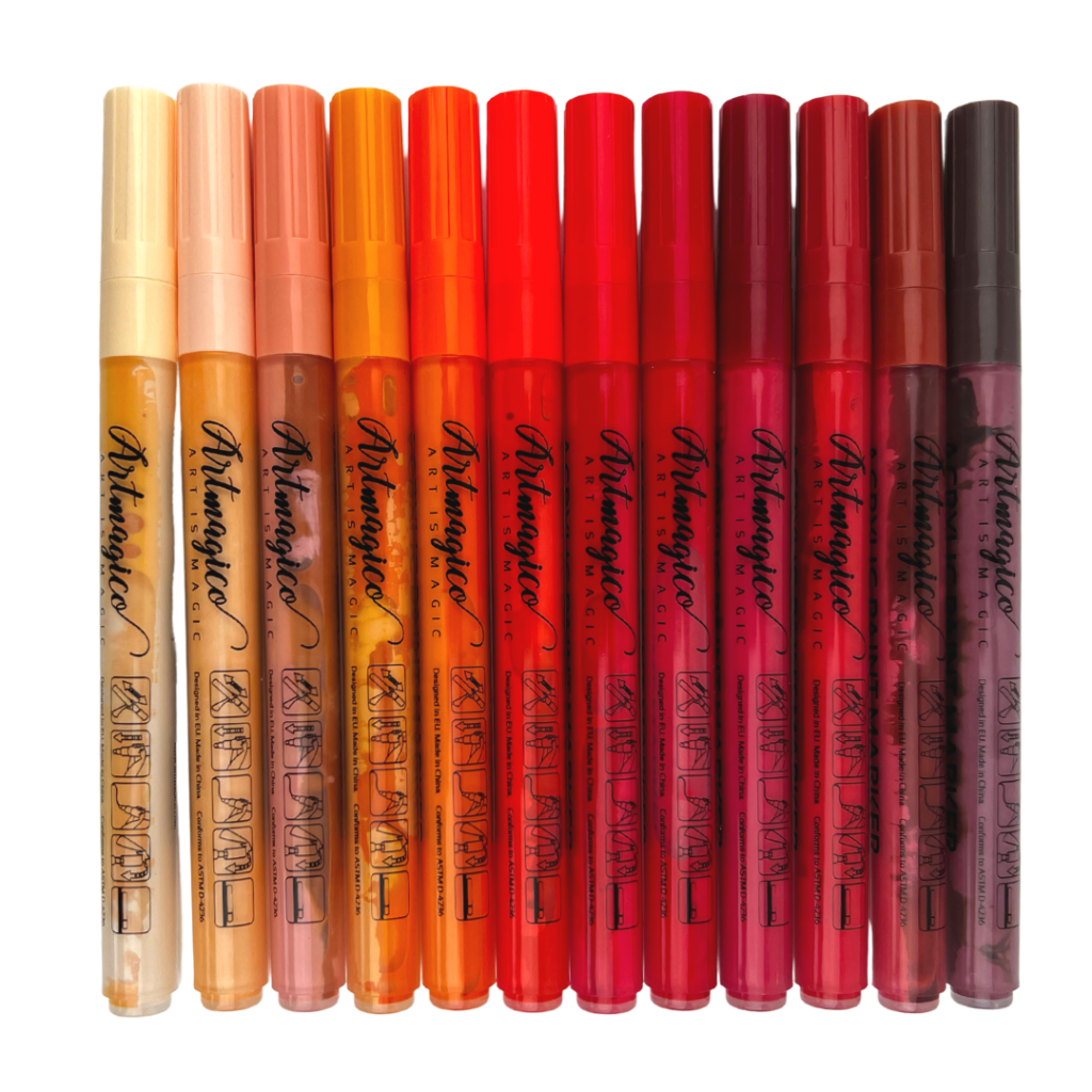 Akrylové popisovače obsahují inovativní inkoust na vodní bázi, jenž využijete na všechny typy povrchů. Fixy Artmagico zajišťují plynulý tok barvy, vysokou krycí schopnost a jasné a konzistentní barvy. V těle fixy najdete akrylovou barvu společně s pojivem, jejichž spojení je zajištěno kuličkou, která při štěrchání zajistí správnou konzistenci.