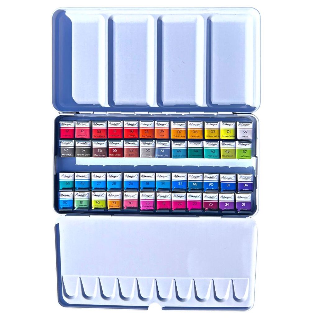 Rozprouděte svou kreativitu s akvarelovými barvami Artmagico ve 48 kusovém setu. Syté barvy, široké možnosti a kvalita, která potěší umělce všech úrovní. Vše pečlivě baleno v kovové krabičce s paletkou pro míchání dalších nádherných odstínů.