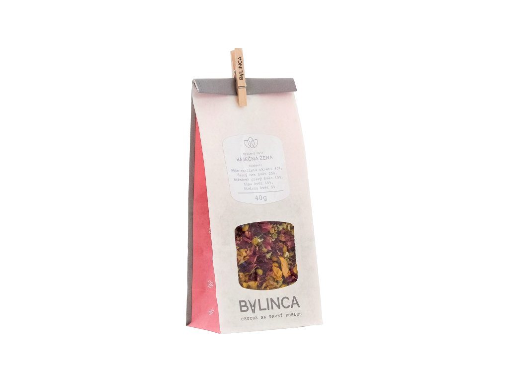 Složení: Růže stolistá okvětí 40%, Černý bez květ 25%, Heřmánek pravý květ 15%, Lípa květ 15% Divizna květ 5%