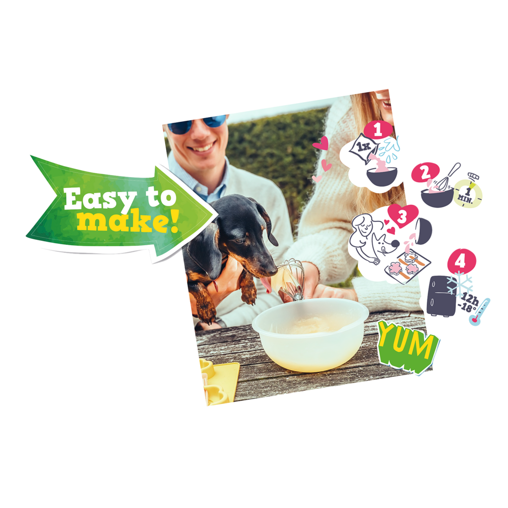 Banány nejsou jenom pro opice, banánová zmrzlina potěší i psí jazýček! Vyrobte vašemu miláčkovi za 60 sekund zmrzlinu, na kterou jen tak nezapomene. V balení jsou dvě směsi a 10 žvýkacích tyčinek místo dřívek, aby měl o zábavu postaráno co nejdéle.