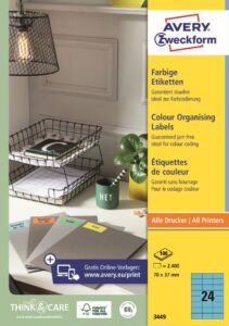 Modré samolepící etikety Avery Zweckform 3449 do kanceláře, obchodu i domácnosti, pro všestranné a spolehlivé použití. Ideální pro tematické barevné rozlišování nebo označování, akční a varovné samolepky, značení ve skladech a logistice, přehledné archivaci atd. Naše barevné etikety se vyznačují vysokou lepivostí na různých typech povrchů. Při tisku se můžete spolehnout na plynulý průjezd archů tiskárnou bez uvíznutí a ostrý tiskový výstup, který se díky vynikajícímu ukotvení tonerového prášku či inkoustu nerozmazává. Samozřejmostí je čtyřstranný bezpečnostní okraj QCT (Quattro Clean Technology), který zabraňuje vytékání a usazování lepidla v tiskárně. Modré samolepící print etikety Avery Zweckform 3449 jsou vhodné pro všechny běžné laserové i inkoustové tiskárny, kopírovací stroje a hodí se i pro psaní, resp. ruční popis.