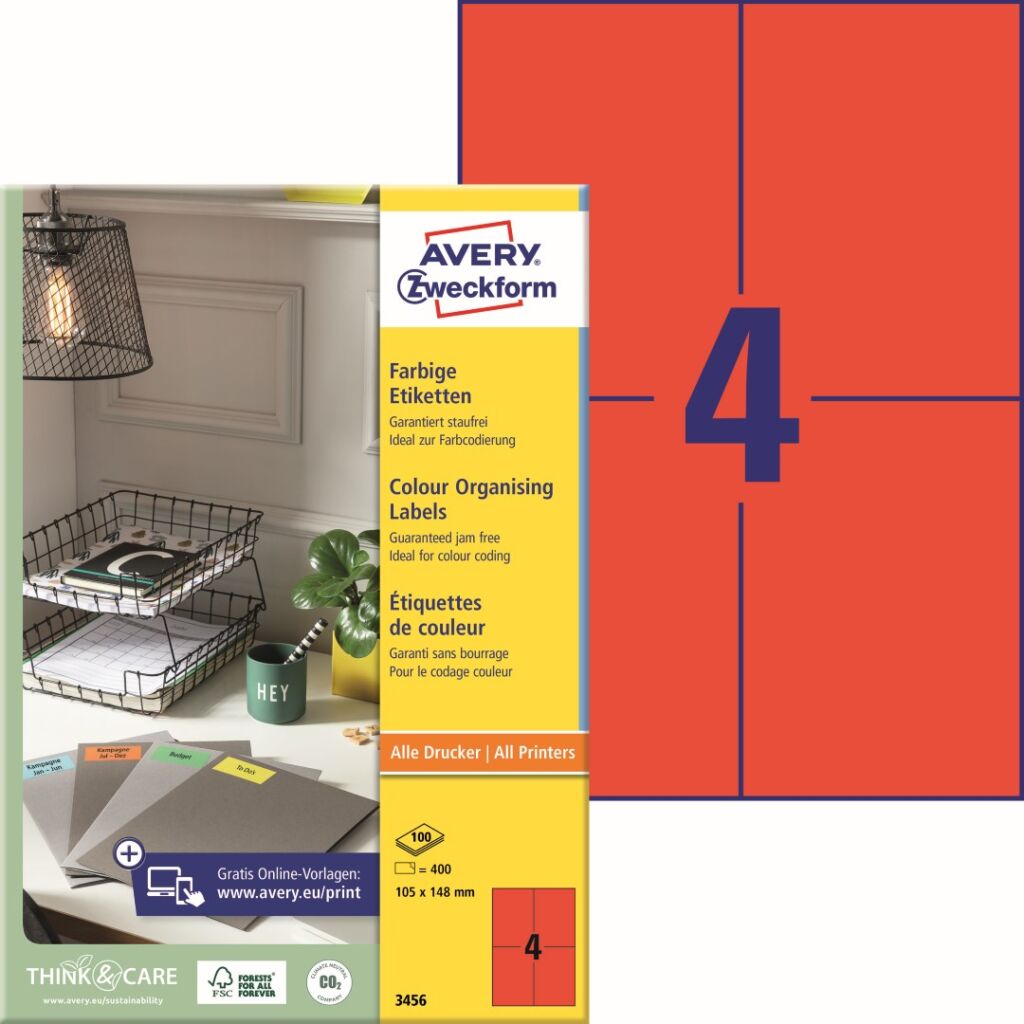 Červené samolepící etikety Avery Zweckform 3456 do kanceláře, obchodu i domácnosti, pro všestranné a spolehlivé použití. Ideální pro tematické barevné rozlišování nebo označování, akční a varovné samolepky, značení ve skladech a logistice, přehledné archivaci atd. Naše barevné etikety se vyznačují vysokou lepivostí na různých typech povrchů. Při tisku se můžete spolehnout na plynulý průjezd archů tiskárnou bez uvíznutí a ostrý tiskový výstup, který se díky vynikajícímu ukotvení tonerového prášku či inkoustu nerozmazává. Samozřejmostí je čtyřstranný bezpečnostní okraj QCT (Quattro Clean Technology), který zabraňuje vytékání a usazování lepidla v tiskárně. Print etikety červené Avery Zweckform 3456 jsou vhodné pro všechny běžné laserové i inkoustové tiskárny, kopírovací stroje a hodí se i pro psaní, resp. ruční popis.