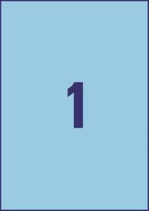 100 archů A4 se splitem, rozměr 210x297 mm, 100 ks etiket v balení, papírové, permanentní lepidlo, barva modrá. Typ tiskárny: černobílá laserová, barevná laserová, inkoustová.