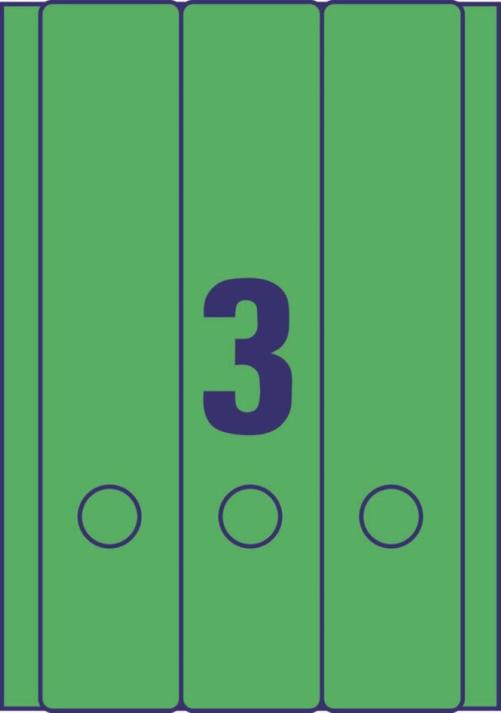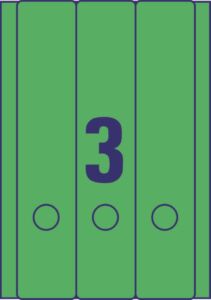20 archů A4, rozměr 61x297 mm, 60 ks etiket v balení, papírové, permanentní lepidlo, barva zelená. Typ tiskárny: černobílá laserová, barevná laserová, inkoustová.