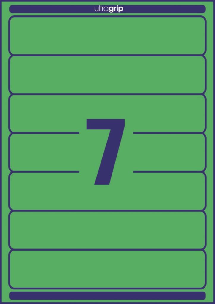 20 archů A4, rozměr 38x192 mm, 140 ks etiket v balení, papírové, permanentní lepidlo, barva zelená. Typ tiskárny: černobílá laserová, barevná laserová, inkoustová.
