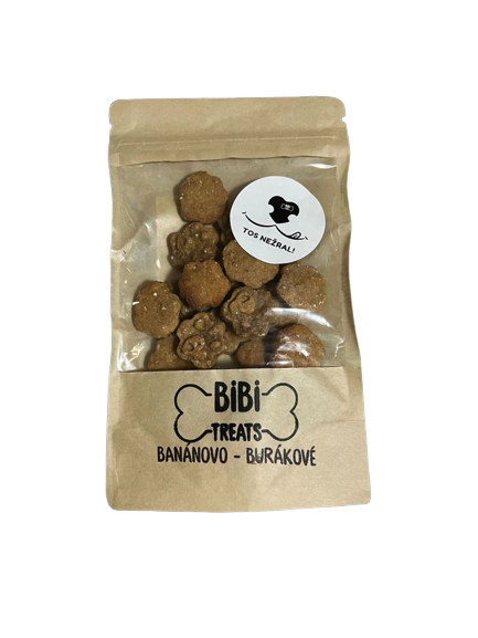 Rozšířili jsme řadu BiBi FOOD dobrot o domácí tlapkové banánovo-burákové sušenky. Jsou křehké tak akorát a dobře se lámou i koušou, takže se hodí jak pro štěňata a psy v nejlepších letech, tak pro žužlání starším pejskům s menším počtem zoubků.