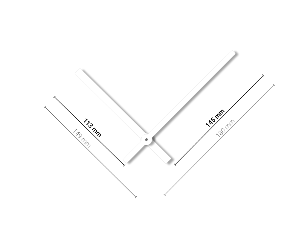 Bílé rovné hliníkové ručičky na hodiny 145 mm | 113 mm