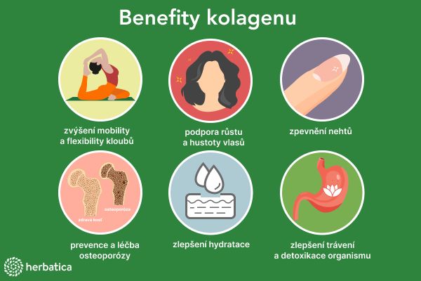 Kolagen je tělu vlastní bílkovina zdraví a krásy. Nejen sportovně aktivní lidé, ale i střední generace by měli kolagen přijímat pravidelně. Dostatek kolagenu totiž předchází problémům s pohybovým aparátem, zrychluje regeneraci po úrazech a operacích a zlepšuje imunitní funkce (ochrana před infekcemi). Užívání kolagenu má pozitivní terapeutickou roli při osteoporóze, osteoartróze či artritidě, poskytuje ochranný efekt na kloubní chrupavku a především poskytuje symptomatickou úlevu od bolesti. Nedostatek kolagenu navenek zpozorujeme zejména na stavu vlasů, nehtů a pokožky. Vlasy jsou suché, lámavé, pokožka ztrácí elasticitu a nehty se rozštěpí dříve než narostou. Vnitřně se nedostatek kolagenu projeví na strnulosti a ztrátě pružnosti šlach a všech pojivových tkání.