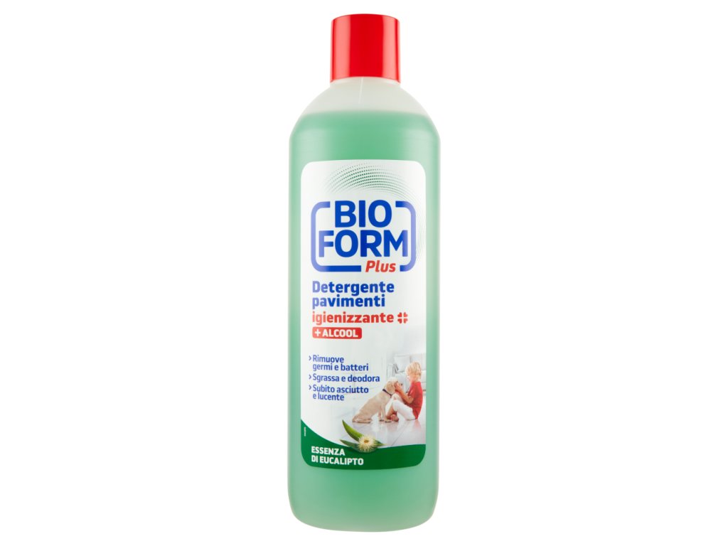 Podlahový a povrchový dezinfekční prostředek Bioform Plus s vůní eukalyptu. Dezinfikuje a čistí všechny povrchy. Odstraňuje nečistoty a zápach. Může být použit na podlahy všech typů, umyvadla a kompletní sanitu, dlaždice, WC, skleněné výrobky, dveře, zárubně a obecně na všechny umývatelné povrchy. S vůní eukalyptu. Dávkování : Pro každodenní čištění se doporučuje dávka 50 ml na každý litr vody.