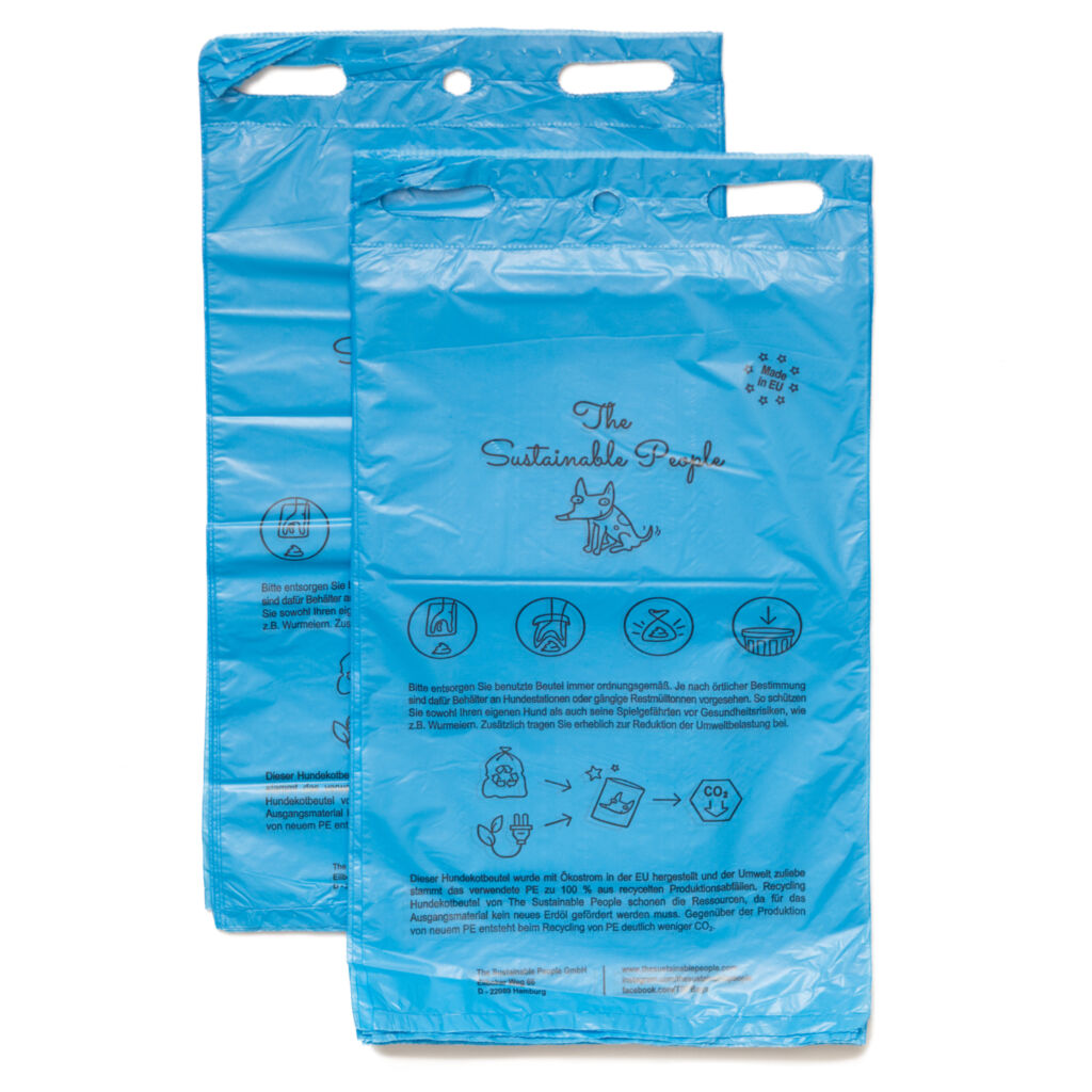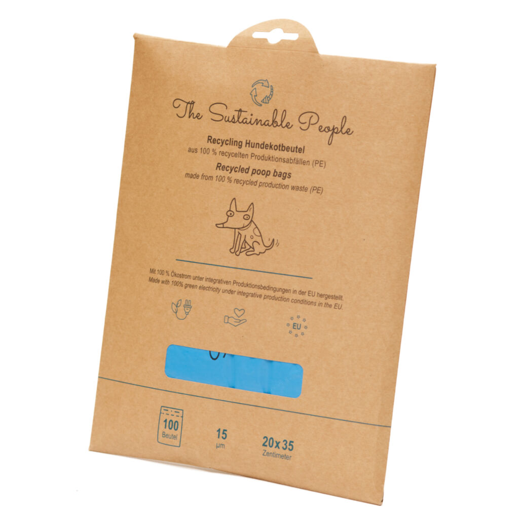 Psí exkrementy a jejich sbírání nepatří k nejoblíbenějšími kratochvílím pejskařů, přesto se tomu nevyhneme. Sáčky na psí exkrementy od The Sustainable People ze 100% z recyklovaného odpadu z domácností (PE) představují výraznou úsporu CO₂ oproti čerstvému PE z nového granulátu. Díky tomu jejich výroba potřebuje méně vyčerpatelných zdrojů a nedochází k produkci ropy.