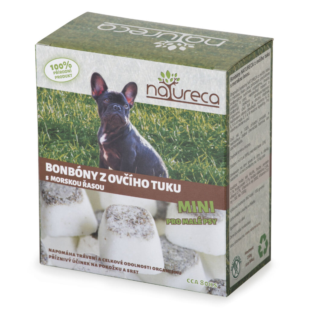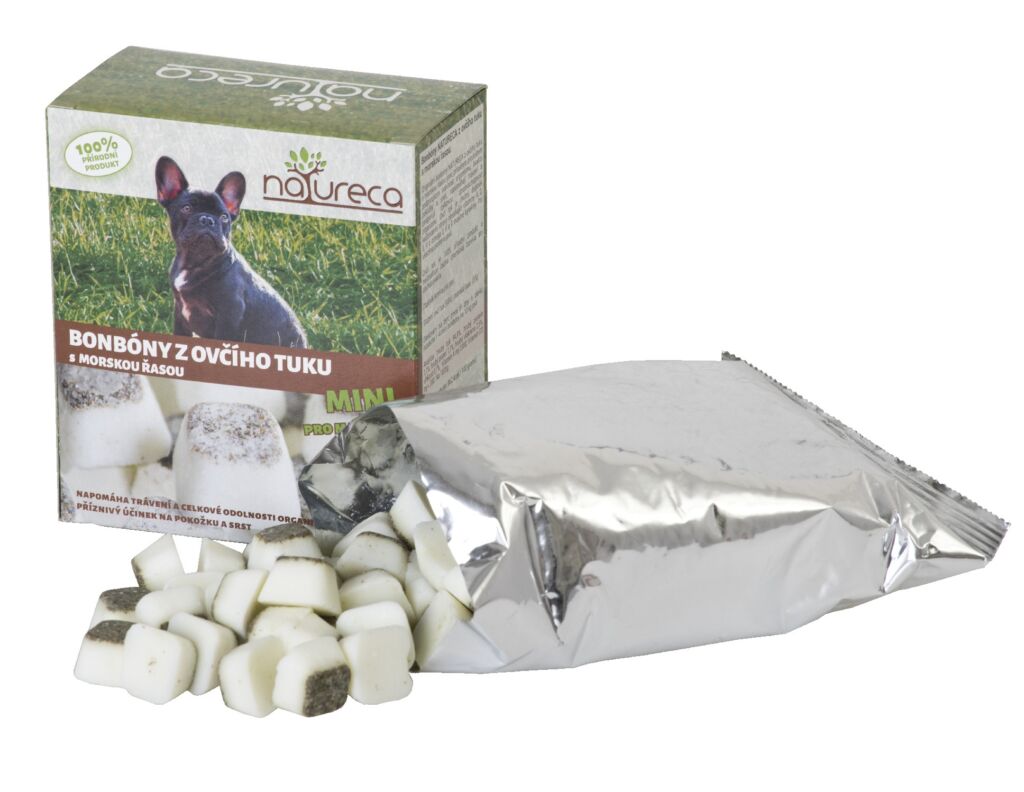 Originální bonbony z ovčího tuku s česnekem /doplňkové krmivo/ NATURECA jsou přírodním produktem podporujícím odolnost organismu proti parazitům (blechám a klíšťatům), zlepšují kvalitu pokožky a srsti, napomáhají trávení a podporují celkovou obranyschopnost organismu.