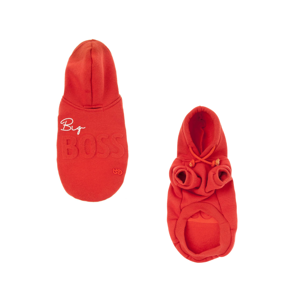 Design se vyznačuje elegantní barevnou kombinací a střihem, který dokonale padne postavě vašeho mazlíčka. Logo „Boss“ pečlivě vytištěné na zadní straně dodává mikině nádech stylu a osobnosti.
