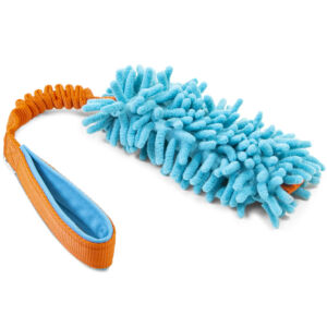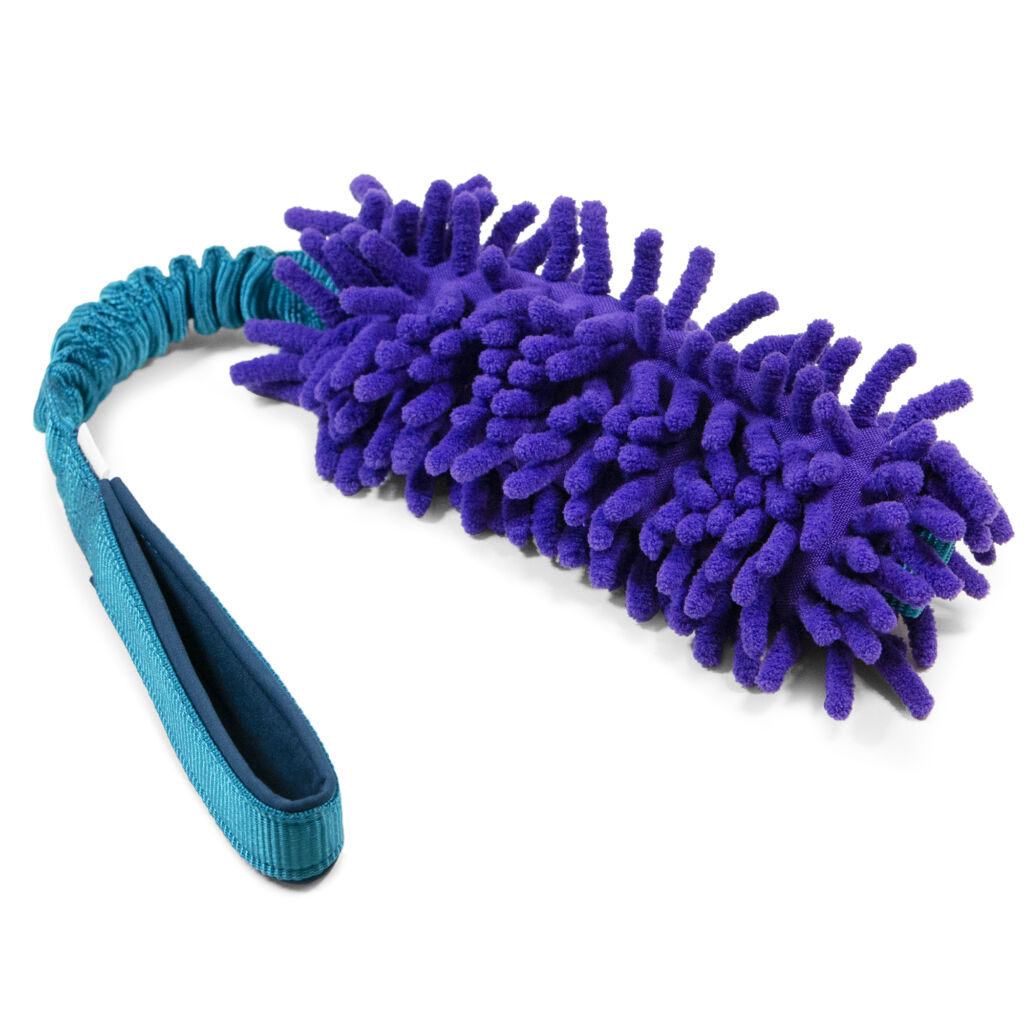 Bungee Mop Tug je vyroben z jedinečného materiálu z mikrovlákna, který je pro psy velmi atraktivní. Nylonová rukojeť je lemována odolným a snadno čistitelným softshellem. Bungee funguje jako tlumič nárazů, který usnadňuje tahání za vaše tělo a zároveň zvyšuje vzrušení z tahání vašeho psa.