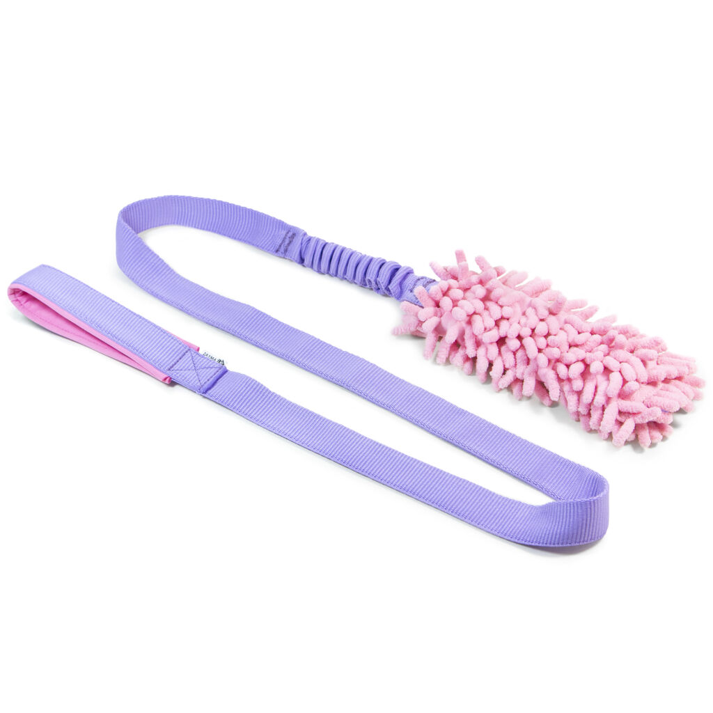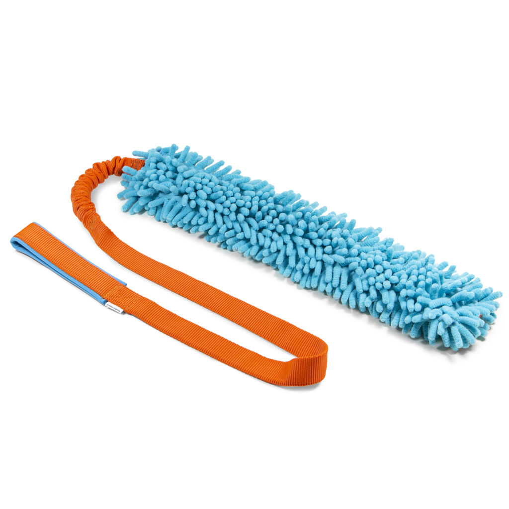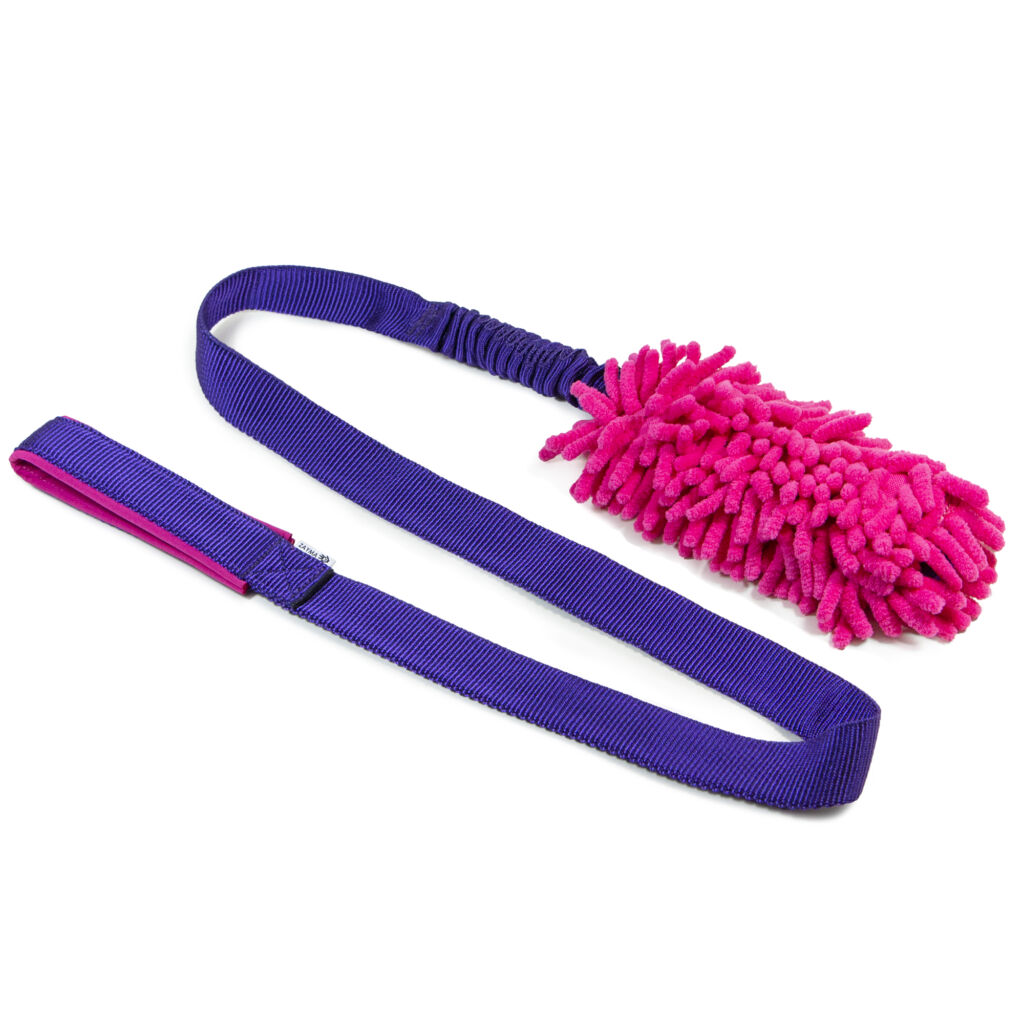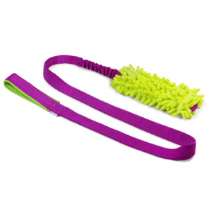 Bungee Mop Tug je vyroben z jedinečného materiálu z mikrovlákna, který je pro psy velmi atraktivní. Dlouhá nylonová rukojeť je lemována odolným a snadno čistitelným softshellem. Bungee funguje jako tlumič nárazů, který usnadňuje tahání za vaše tělo a zároveň zvyšuje vzrušení z tahání vašeho psa.