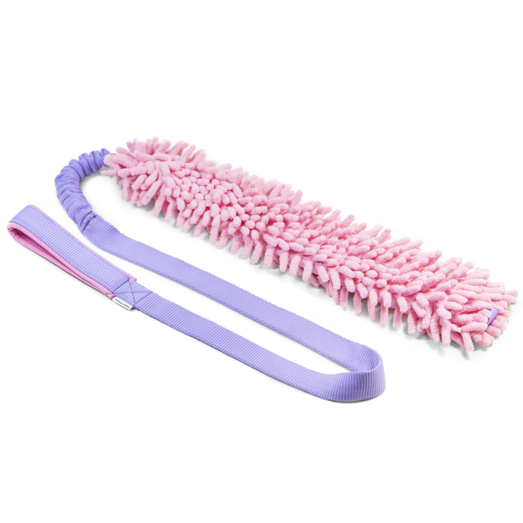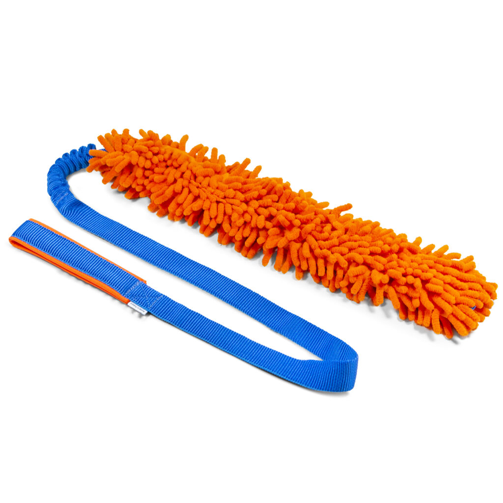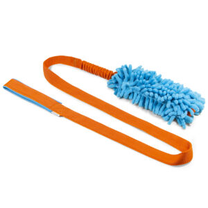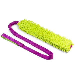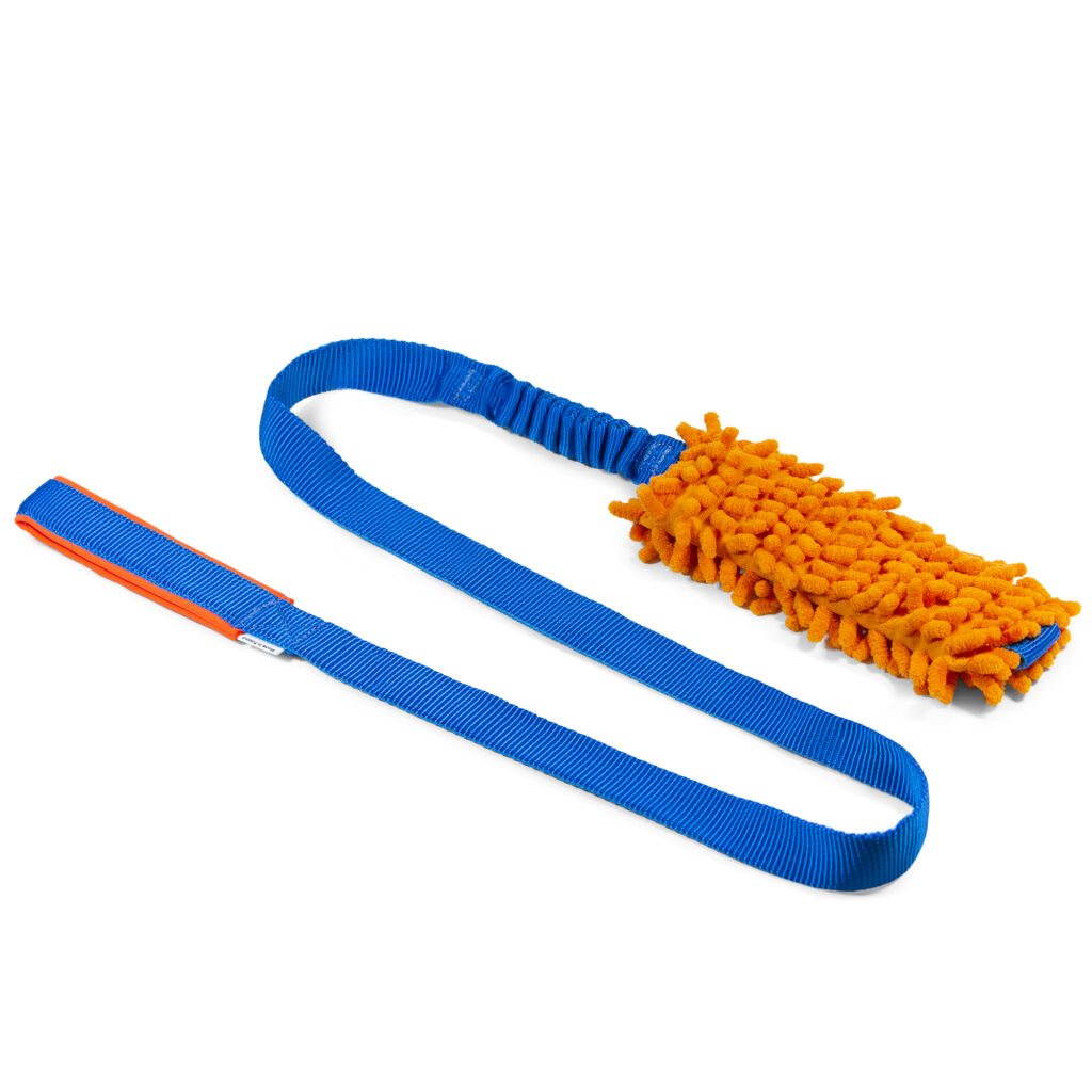 Bungee Mop Tug je vyroben z jedinečného materiálu z mikrovlákna, který je pro psy velmi atraktivní. Dlouhá nylonová rukojeť je lemována odolným a snadno čistitelným softshellem. Bungee funguje jako tlumič nárazů, který usnadňuje tahání za vaše tělo a zároveň zvyšuje vzrušení z tahání vašeho psa.