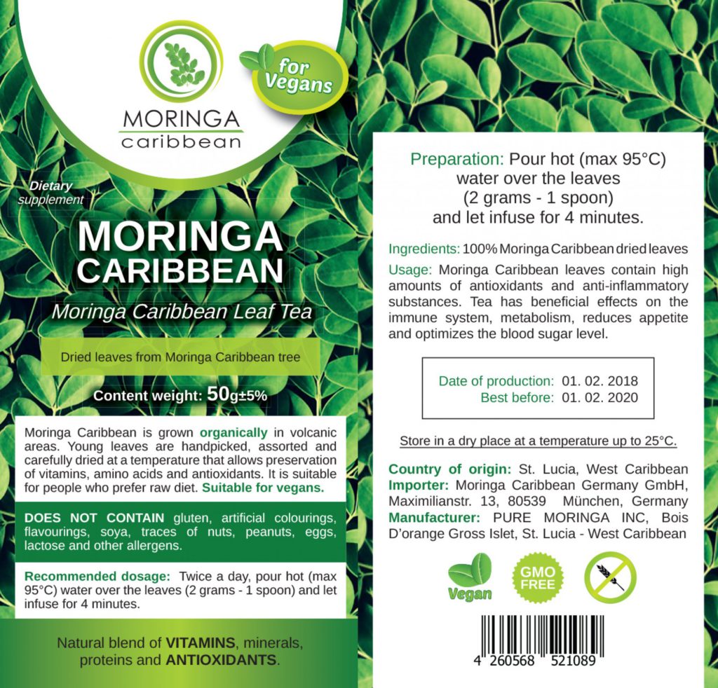 Moringa Caribbean je považována za superpotravinu pro její nutriční kvality a vysoký protizánětlivý, antioxidační a ochranný efekt. Ve východních kulturách byla používána jako prostředek k prevenci onemocnění jako je diabetes, kardiovaskulární a respirační onemocnění, zažívací potíže, artritida, anémie a další.
