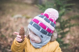 Dětská pletená zavazovací čepice pruhy – Outlast® je podšita