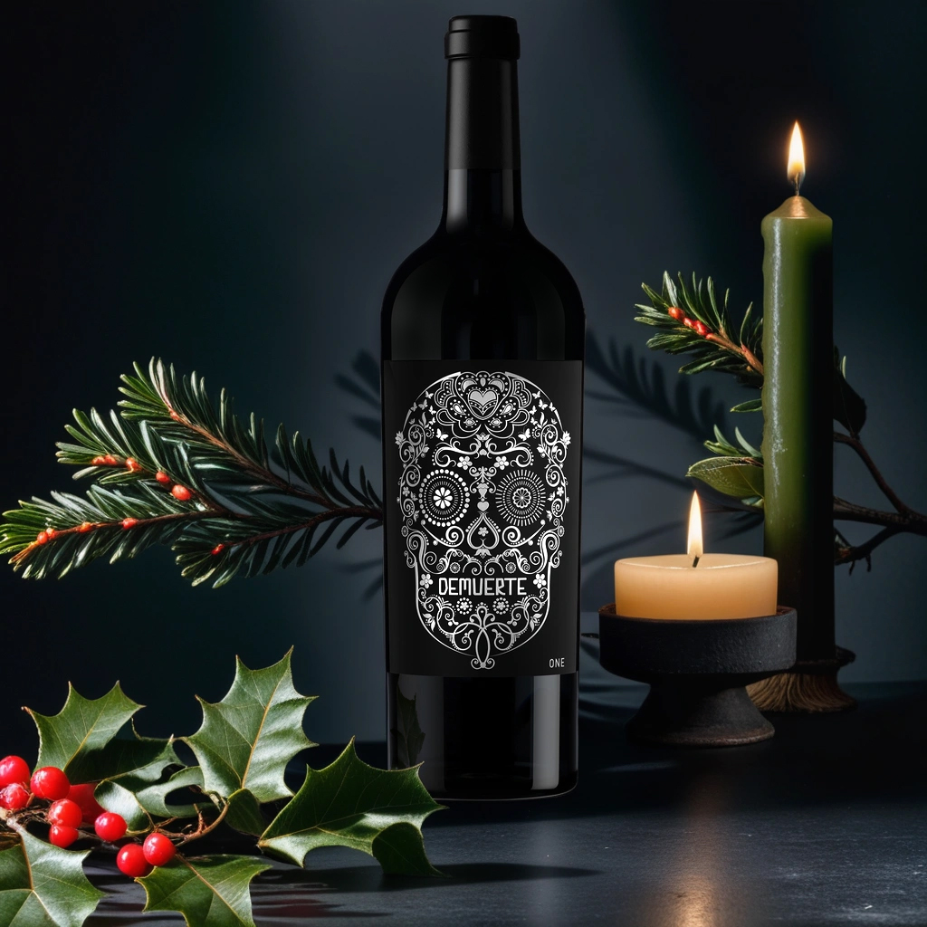 Jednou z nejzajímavějších vlastností DEMUERTE ONE je jeho fluorescenční etiketa, která ve tmě svítí. Design s motivem mexické lebky oslavuje život, kreativitu a moderní vinařskou tradici. Tato unikátní etiketa z něj dělá víno, které nejen chutná, ale také zaujme svou originalitou.