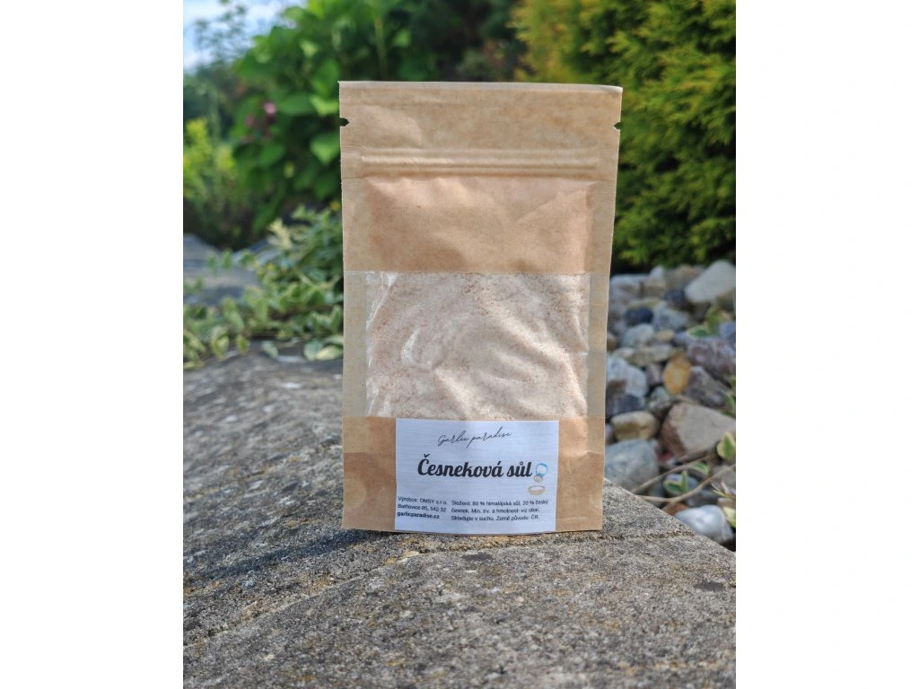 Vyrobeno z 20 g sušeného českého česneku a 80 g himalájské soli.