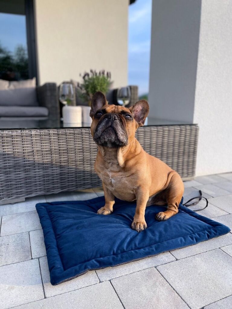 Po složení získá karimatka tvar malé kostky, kterou snadno hodíte do tašky nebo batohu. Po rozložení získá tvar obdélníkového lůžka. Rohož je vyrobena z nepromokavého materiálu na jedné straně a sametového veluru na druhé straně. Tato konstrukce dokonale izoluje a chrání psa před vlhkostí i při spánku na mokré louce.