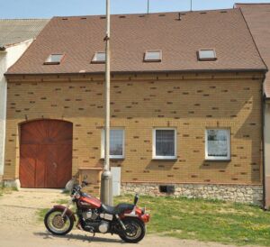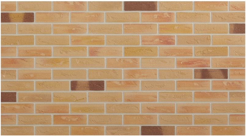 Rozměr cihlové pásky 240×71 mm, barva Classique – (původní označení Klassisch Bunt) – rustikální písková barva. Žádná páska se barevně neopakuje, výsledkem je pak přirozený vzhled v instalované ploše.