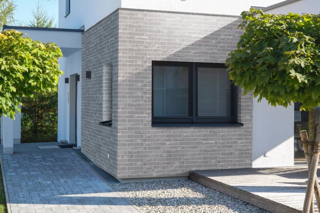 Oblíbené jsou také realizace cihlových obkladů na částech fasády, využití najdou při řešení architektonických detailů, rohů, komínů, kleneb, oblouků, atd. Obklady lze po nahřátí horkovzdušnou pistolí snadno ohnout a využít je tak pro řešení nejrůznějších detailů.