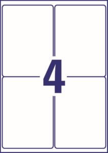 rozměr 99,1×139 mm, 25 archů A4, 100 ks etiket v balení (4 ks/arch), PET fólie, permanentní lepidlo. Typ tiskárny: černobílá laserová, barevná laserová.