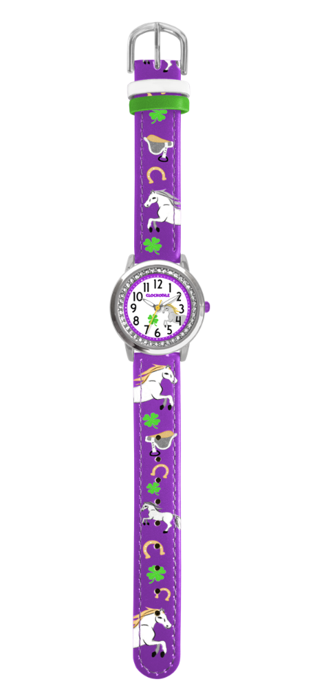 CLOCKODILE Fialové dívčí dětské hodinky a kamínky KONÍK